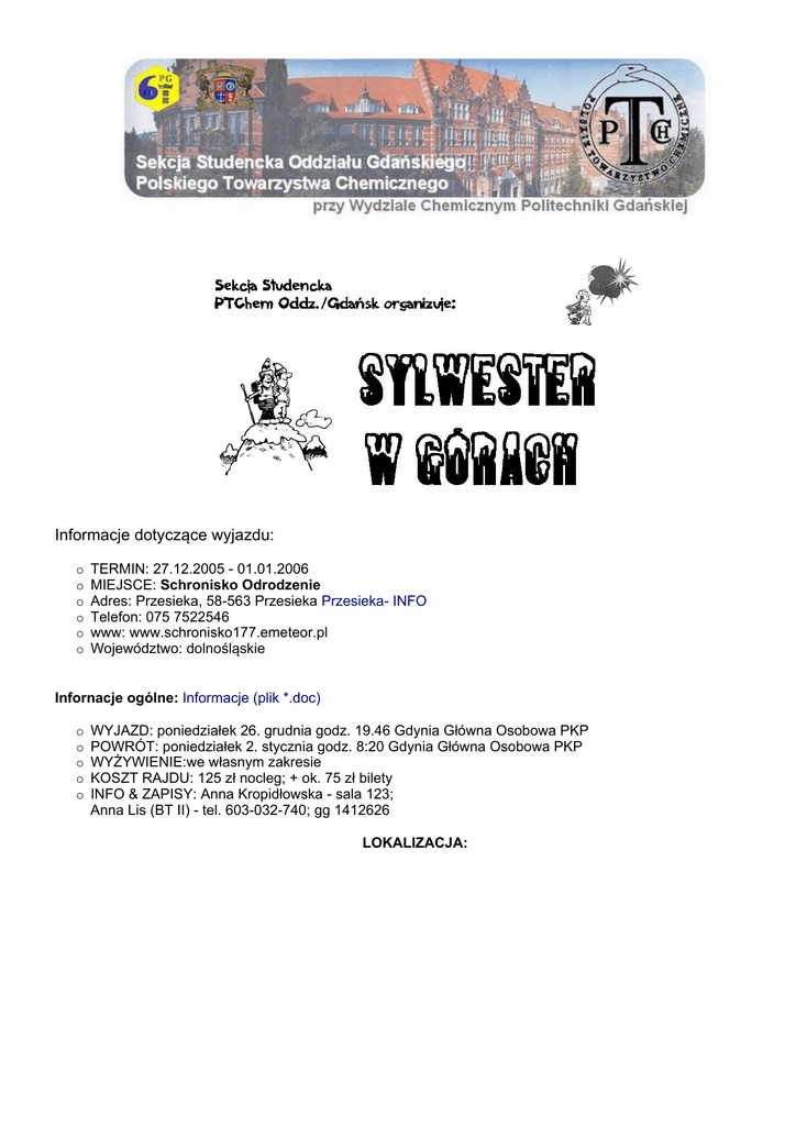 KOSZT RAJDU: 125 zł nocleg; + ok. 75 zł bilety