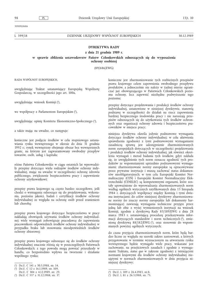 Dyrektywa 89/686/EWG z dnia 21.12.1989 r.