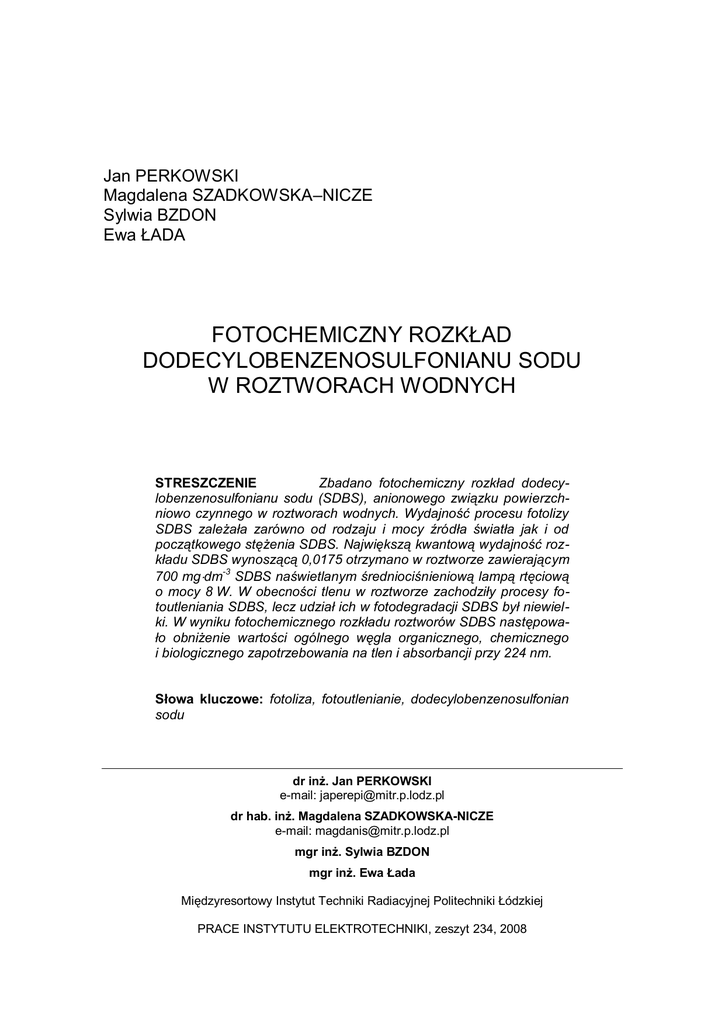 Fotochemiczny rozkład dodecylobenzenosulfonianu sodu w