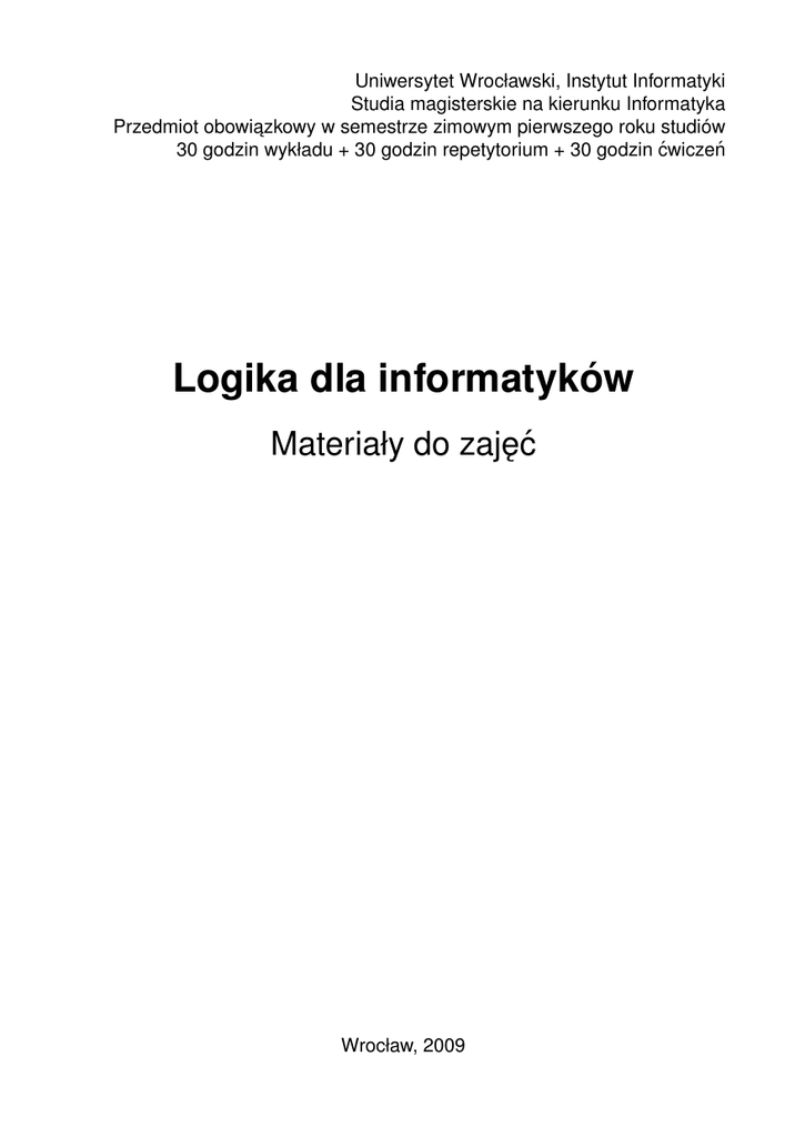 materiały przygotowywane do zaj˛eć z Logiki dla informatyków w latach 1997–2009.