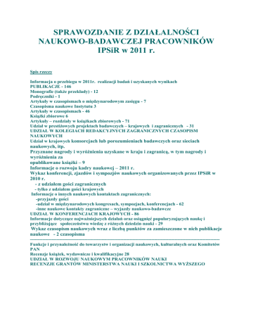 SPRAWOZDANIE Z DZIAŁALNOŚCI NAUKOWO-BADAWCZEJ PRACOWNIKÓW IPSiR w 2011 r.