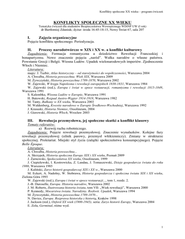 konflikty społeczne xx wieku - Instytut Nauk Politycznych UW