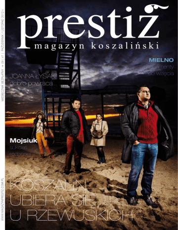 miesięcznik bezpłatny nr 09 | 41 | październik / listopad 2012 r. Joanna Łysiak dobro powraca Mojsiuk www.magazynprestiz.com.pl sukces rodzinnej firmy Koszalin ubiera się u Rzewuskich Mielno apartamenty do wzięcia Mojsiuk Sp.J., ul. Pomorska 88, 70-812 Szczecin Dąbie, tel.: +48 91 48 08 712; Stare bielice 128, Koszalin, tel.: +48 94 34 77 372 Spis treści MIESIĘCZNIK BEZPŁATNY nr 09 | 41 | PAŹDZIERNIK / LISTOPAD 2012 r. Słowo Od redaktora i wydawcy JOANNA ŁYSIAK dobro powraca MIELNO apartamenty do wzięcia Mojsiuk sukces rodzinnej firmy 4 | PRESTIŻ | październik/listopad 2012 WWW.MAGAZYNPRESTIZ.COM.PL N ic nie poradzę, ale w kwestiach plastyki i muzyki mogę tylko powiedzieć tyle, że coś mi się podoba albo nie. Nie dane mi było posiąść talent w którejś z tych dziedzin, więc ich nie praktykuję, co nie znaczy, że są mi obojętne. Z powodu osobistych deficytów silniej za to doceniam tych, którzy twórczo się spełniają projektując, tworząc obrazy (malarskie, graficzne, fotograficzne), albo pięknie grając lub śpiewając. Ten podziw rozciągam także na twórców i znawców mody, rozumianej jako sztuka użytkowa, sztuka codzienności. W Koszalinie słowo „moda” zawsze budzi we mnie skojarzenie z nazwiskiem Rzewuski. Może dlatego, że kiedy 20 lat temu zamieszkałem tutaj a miasto przeżywało wtedy czas żywiołowej przemiany, butiki Tamary i Janusza Rzewuskich były pierwszymi tak szykownymi sklepami, które rzuciły wyzwanie Modzie Polskiej (pamiętają Państwo jeszcze Modę Polską?). Wyróżniały się. Proponowały coś, co wówczas mogło uchodzić nawet za ekstrawagancję. Moda się zmienia, pozostaje styl, mawiała Coco Chanel. Odnoszę wrażenie, że sklepy firmy Rzewuscy niezmiennie dotrzymują kroku modzie, zachowując klasę. Dlatego bardzo się ucieszyłem, kiedy państwo Tamara i Janusz zgodzili się na wspólny z „Prestiżem” eksperyment, którego pierwsze efekty Czytelnicy mogą obejrzeć w tym wydaniu naszego magazynu. Samodzielnie przygotowywana sesja modowa to duże wyzwanie. Tym bardziej, gdy modelami są nie zawodowcy, ale ludzie uprawiający inne profesje. Im również dziękujemy i gratulujemy. Przyznają Państwo, że trzeba odwagi, żeby wcielić się w nietypową dla siebie rolę i wystawić się na publiczną ocenę. Pozowały panie Karolina Maciejewska, kierownik perfumerii Marionnaud (CH Atrium) i Wioletta Socha, kierownik salonu Gerry Weber w centrum handlowych przy ul. Zwycięstwa 21-25. Męscy modele to Adam Szałek, były zastępca prezydenta Koszalina, dzisiaj przedsiębiorca i Marcin Zarębski, kiedyś handlowiec, obecnie trener biznesu – wspólnicy w firmie Instytut Dobrych Praktyk Biznesowych. Warto podkreślić, że wszyscy wystąpili nie w specjalnie przygotowanej kolekcji, ale w strojach, które dostępne są dla każdego i w każdej chwili, bo czekają w salonach mody firmy Rzewuscy. Tak może wyglądać Koszalin! Publikujemy pierwszą sesję, lecz nie ostatnią. Nasz eksperyment trwa. Może ktoś z Państwa chciałbym wcielić się w rolę modela lub modelki podczas kolejnych prezentacji? Zapraszamy. Andrzej Mielcarek KOSZALIN UBIERA SIĘ U RZEWUSKICH OKŁADKA Na okładce: Karolina Maciejewska, kierownik perfumerii Marionnaud (CH Atrium), Wioletta Socha, kierownik salonu Gerry Weber (ul. Zwycięstwa 21-25), Adam Szałek, Marcin Zarębski – wspólnicy w firmie Instytut Dobrych Praktyk Biznesowych Fotografie: Wojciech Gruszczyński www.wojciechgruszczynski.pl Makijaże: Edyta Kołakowska, Be Beautiful Studio ul. Wańkowicza 1/4, www.bbstudiokoszalin.pl Fryzury: Dorota Ignaczak, Centrum Urody ul. Wańkowicza 1/5 Zdjęcia zostały wykonane w hotelu i restauracji Meduza w Mielnie WYDARZENIA 6 Koszalińska Szlachetna Paczka 7 Duma Mielna prawie gotowa BIZNES 8 Kronika Północnej Izby Gospodarczej 10 Świąteczne ozdoby i zielone dachy 12 Mojsiuk Centrum Blacharsko-Lakiernicze, jedyne takie w Polsce LUDZIE 14 Joanna Łysiak: Wierzę, że dobro powraca 20 Roman Biłas: Z Ukrainą w sercu 24 Michał Bieliński: Biegiem oderwać się od stresu PODRÓŻE 26 Beata Ostrowska spotkała kobiety – pająki 30 Celem jest droga – Wojtek Grela rusza do Ameryki Południowej MODA 32 Koszalin ubiera się u Rzewuskich 40 Makijaż. Jesienna nostalgia 44 Denimking: Nosi… mnie jeans! DESIGN 46 Skandynawski kult prostoty 48 Firmus: Prestiżowe apartamenty w Mielnie ZDROWIE I URODA 52 Usta – powiększać, czy tylko odświeżać? 54 Jak zwalczyć kaszel 58 Unitral zaprasza przyszłe mamy do SPA MOTORYZACJA 62 Citroen DS5 Sport Chic, czyli prezydencka hybryda KULINARIA 64 Jesienne zupy KULTURA 66 Prestiżowe imprezy 67 Kronika „Prestiżu” MIESIĘCZNIK BEZPŁATNY ul. Gajowa 14, 75-454 Koszalin tel. +48 664 774 776 e-mail: [email protected] www.magazynprestiz.com.pl Redaktor naczelny: Andrzej Mielcarek e-mail: [email protected] Skład gazety: PROduktART.com.pl Maciej Jurkiewicz Dystrybucja: Agnieszka Staszewska, tel. 883 900 791 Redakcja internetowa: e-mail: [email protected] Dział Reklamy i Marketingu: Agnieszka Staszewska (szef), tel. 883 900 791, e-mail: [email protected] Wydawca: Zarządzanie i Szkolenia Andrzej Mielcarek, Koszalin Druk: KaDruk Sp z o.o. Miesięcznik wydawany jest we współpracy z: Fabryka Słowa sp. z o.o. Redakcja nie odpowiada za treść reklam i ogłoszeń. Wydarzenia Koszalińska Szlachetna Paczka Przywykliśmy do mnogości akcji charytatywnych. Ale ta jest szczególna, bo nie roztkliwia się nad biedą, lecz niesie pomoc w taki sposób, by życie obdarowanych zmieniło się na trwałe. k olejne edycje Szlachetnej Paczki mają powtarzalny scenariusz. Zaczyna się od wytypowania rodzin żyjących w niezawinionej biedzie – wywołanej wypadkiem, chorobą albo innym dramatycznym zdarzeniem losowym (zazwyczaj nie zdajemy sobie sprawy, że w Polsce taki rodzaj ubóstwa dotyczy dwóch milionów osób!). Kolejny krok to dyskretne sprawdzenie przez odpowiednio przygotowanych wolontariuszy sytuacji k