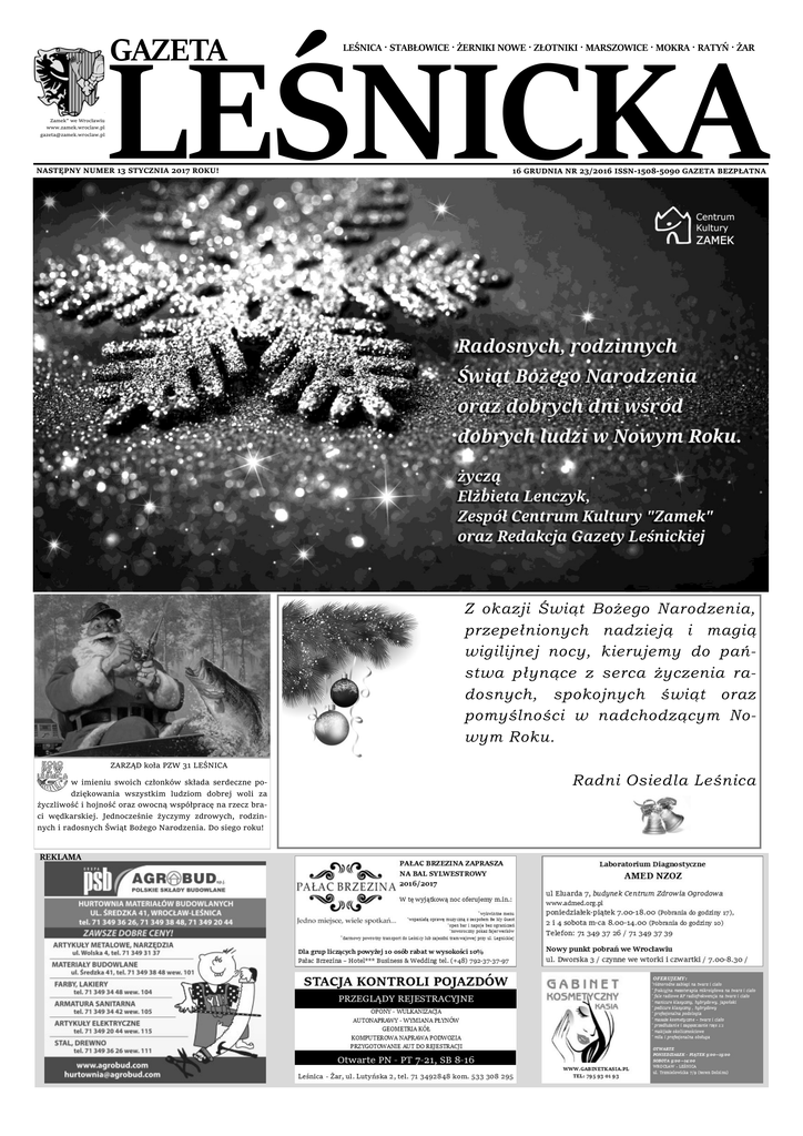 Gazeta Leśnicka, 16 grudnia 2016 - Centrum Kultury Zamek | Wrocław
