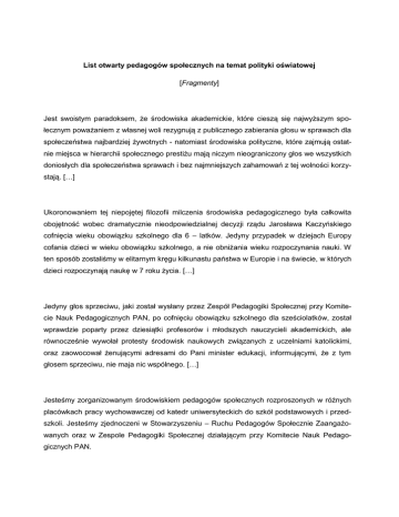 skrót tego listu otwartego