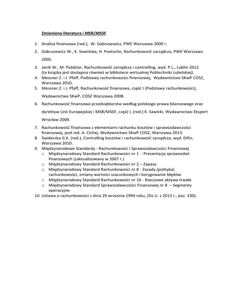 Zmieniona literatura i MSR/MSSF 1. Analiza finansowa (red.), W