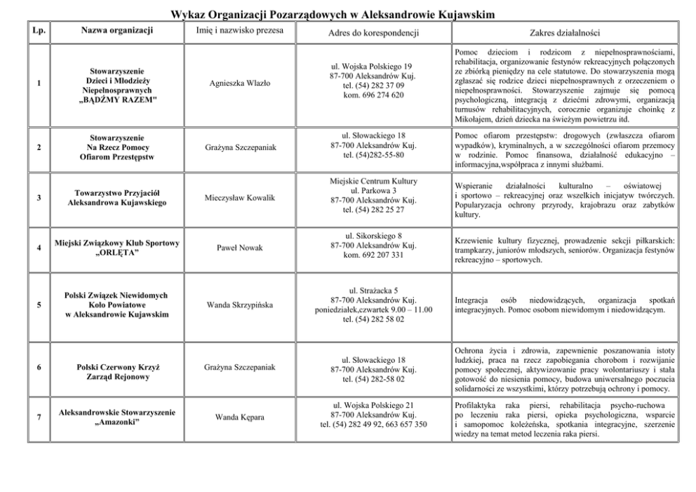 Wykaz Stowarzyszeń - Aleksandrów Kujawski