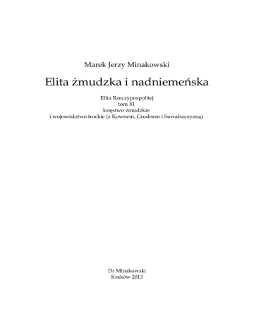 Marek Jerzy Minakowski Elita żmudzka i nadniemeńska Elita Rzeczypospolitej tom XI księstwo żmudzkie i województwo trockie (z Kownem, Grodnem i Suwalszczyzną) Dr Minakowski Kraków 2013 Egzemplarz № ░░░░░░░░ ISBN 978-83-63202-09-5 Wydawca: Dr Minakowski ul. Komandosów 5/10 30-334 Kraków [email protected] www.przodkowie.com, ElitaRP.pl Złożono do druku w październiku 2012 Copyright © by Marek Jerzy Minakowski Zasady serii Elita Rzeczypospolitej 3 Zasady serii Elita Rzeczypospolitej Ogólną przedmowę do serii wydawniczej Elita Rzeczypospolitej umieściłem w tomie I (Elita północnomazowiecka, Kraków 2011). W tomie II nie umieściłem jej z powo du braku miejsca. Począwszy od tomu III umieszczam ją w wersji skróconej, jak poni żej. Z czasem zasady te będą ewoluować (co jest nieuniknione przy długich seriach wydawniczych), ale nie powinny to być zmiany głębokie. 1. Seria niniejsza przedstawia genealogię elity społeczno-politycznej Rzeczypo spolitej (Królestwa Polskiego i Wielkiego Księstwa Litewskiego) od pokolenia kwitną cego w ostatnich latach jej istnienia (okres Sejmu Wielkiego) do dzisiaj. 2. Uczestnicy Sejmu Wielkiego (jego posłowie i senatorowie) urodzili się około roku 1745. Tymczasem ostatnie kompletne wielotomowe kompendium genealogii elit Rzeczypospolitej, obejmujące całość alfabetu, to Korona polska Kaspra Niesieckiego (tzw. „Herbarz Niesieckiego”), ukończona w roku 1743 (autor zmarł w 1744). Misję ni niejszego dzieła można więc streścić następująco: Elitę rodową początków Rzeczypospolitej pokazuje kronika Jana Dłu gosza, zakończona z jego śmiercią w roku 1480. Kolejne 263 lata są opi sane w herbarzu Niesieckiego. Elita Rzeczypospolitej przedstawia zaś okres 267 lat od śmierci Niesieckiego do dzisiaj. Jak mają być sobie po dobne, tak muszą być od siebie różne — bo inne czasy je zrodziły i inne okresy są w nich przedstawione. 3. Rozmaicie można definiować tradycyjną elitę i każda definicja ma swoje wady. Chcąc być kompletnym, a jednocześnie nie przekraczać objętością czterdziestu tomów, przyjąłem wypróbowaną definicję „potomków Sejmu Wielkiego”. Są to więc posłowie na Sejm wybrani w wyborach 1788 i 1790 (obie kadencje Sejmu Czteroletnie go), senatorowie, którzy w tym czasie zaprzysięgli Konfederację sejmową, a także ro dzeństwo jednych i drugich wraz z potomstwem we wszystkich liniach aż do dziś. 4. Definicja ta nie rozróżnia stanu (szlachecki lub plebejski) ani sposobu dzie dziczenia (czy w linii męskiej, czy żeńskiej). Przez swą szerokość obejmuje więc ob szerne grupy zwane w XIX i XX wieku inteligencją — nawet wtedy, gdy w innych li niach te same osoby wywodziły się ze stanu mieszczańskiego czy żydowskiego, albo nawet chłopskiego. Nie rozróżnia narodowości, płci ani miejsca zamieszkania. 5. Inaczej niż dawniejsze herbarze, nie umieszczam tu informacji biograficz nych, a jedynie podstawowe daty życia opisywanych osób. Odsyłam za to, gdzie tylko to możliwe, do artykułów zamieszczonych w Polskim Słowniku Biograficznym, który ukazując się od roku 1935 doszedł już szczęśliwie do „Sz”. 6. Piszę tę książkę z perspektywy obywatela Rzeczypospolitej, a nie jednego z wielu państw powstałych na jej gruzach. Tak się jednak złożyło, że większość żyjących osób przedstawionych w tej książce mówi w domu po polsku. To samo dotyczy pre 4 Marek Jerzy Minakowski — Elita żmudzka i nadniemeńska numeratorów. Dlatego w tym języku książkę tę napisałem. Jeżeli pojawią się odpo wiednio silne argumenty — wybrane tomy (lub nawet całość) chętnie zobaczyłbym też w innych językach. 7. Elita Rzeczypospolitej podzielona jest na tomy według podziału administra cyjnego Rzeczypospolitej tak, by żaden tom nie przekraczał tysiąca stron. Czasami udaje się zmieścić jedno województwo w jednym tomie (tak było w tomie II), czasem tylko pół województwa (tak było w tomie I), a czasami na jeden tom składają się aż cztery dawne województwa (jak w tomie III). 8. Kolejność tomów jest przypadkowa. Prenumeratorom wysyłane są kolejne tomy, docelowo z częstotliwością miesięczną. Lista prenumeratorów umieszczona jest na końcu niniejszego tomu. Gdyby ktoś zdecydował się na prenumeratę później, bra kujące tomy również otrzyma. Jest też możliwość zamawiania jedynie wybranych to mów, kosztuje to jednak więcej. 9. Każdy tom opatrzony jest tablicą genealogiczną pokazującą powiązania we wnątrz grupy osób stanowiących elitę danego regionu. Te tablice pokazują, że w każ dym z tych przypadków mamy do czynienia z jedną de facto rodziną, a wyróżnianie „rodzin” według nazwisk lub pochodzenia od konkretnej osoby ma charakter umow ny. Stanowią uproszczoną mapę umożliwiającą odnalezienie się w gąszczu powiązań rodzinnych. 10. Właściwa treść zebrana jest w rozdziałach opisujących rodzinę danego członka elity wraz z jej koligacjami. 11. Wybierając osoby ważne, z którymi powiązania pokazać warto, kieruję się przede wszystkim kryterium posiadania biogramu w Polskim słowniku biograficznym. Dzieło to, wydawane początkowo przez Polską Akademię Umiejętności, a obecnie przez Instytut Historii Polskiej Akademii Nauk ukazuje się od roku 1935 i dochodzi do końca litery „S”, opisując ponad 26.000 osób żyjących na terenach Rzeczpospolitej lub mocno z nią związanych od pradziejów do końca XX wieku. Osoby o nazwiskach za czynających się na T-Ż są przez to niesprawiedliwie dyskryminowane, czy jednak można czekać kolejne ćwierć wieku (albo i więcej) aż dzieło to zostanie dokończone? Nie znam innego obiektywnego standardu, który pozwoliłby ocenić, kto jest postacią ważną, a o kim pamiętać się nie musi. Z Polskiego słownika biograficznego wybieram więc około 50 osób, które są najbliżej powiązane z bohaterem danego rozdzi