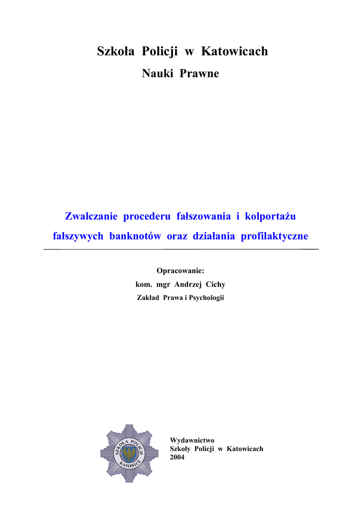 Szkoła Policji w Katowicach Nauki Prawne Zwalczanie procederu fałszowania i kolportażu fałszywych banknotów oraz działania profilaktyczne Opracowanie: kom. mgr Andrzej Cichy ŁA PO O C JI LI SZK Zakład Prawa i Psychologii Wydawnictwo Szkoły Policji w Katowicach 2004 2 3 SPIS TREŚCI: Wstęp 5 1. Istota i znaczenie procesu wykrywczego oraz dowodowego 7 2. Zapobieganie i zwalczanie procederu fałszowania i kolportażu fałszywych banknotów 12 3. Efekty działań organów ścigania karnego i wymiaru sprawiedliwości 39 Bibliografia 41 4 5 WSTĘP Ze względu na rozbieżności związane z rozumieniem pojęcia: „wykrywanie” oraz brak wyczerpującej i jasnej definicji tego zwrotu, postanowiłem przybliżyć w przystępnej formie znaczenie tego sformułowania; zarówno w ujęciu ogólnym, jak też w odniesieniu do problematyki fałszerstw i kolportażu fałszywych pieniędzy. Niniejszy skrypt zawiera także wyjaśnienia najistotniejszych zagadnień, ściśle związanych z istotą wykrywania i pracy wykrywczej organów ścigania karnego i wymiaru sprawiedliwości. Opracowanie to jest rezultatem prowadzonych przeze mnie badań. To zbiór teoretycznych rozważań, wynikających z doświadczeń zdobytych przez wyspecjalizowane w tej dziedzinie podmioty. Tematyka tego skryptu może posłużyć jako poszerzenie i uzupełnienie wiadomości zdobytych przez słuchaczy w trakcie zajęć z kryminalistyki, głównie w aspekcie taktyki kryminalistycznej. Źródło to będzie także pomocne we wzbogaceniu posiadanej przez wykładowców wiedzy, m.in. w ramach doskonalenia zawodowego. 6 7 1. Istota i znaczenie procesu wykrywczego oraz dowodowego Na podstawie teorii i bieżącej praktyki wypracowany został model procesu wykrywania fałszerza i kolportera fałszywych pieniędzy. Precyzując ten model, T. Hanausek stwierdził, że: „tradycyjny model wykrywania sprawców przestępstw w większości koncepcji teoretycznych opierał się na poszukiwaniu zazwyczaj jednego punktu wyjścia dla działań wykrywczych na miejscu zdarzenia ...” Nie negując przydatności oględzin i innych czynności procesowych, wskazał on na konieczność poszukiwania efektywnych źródeł informacji w różnych sferach oraz wielopłaszczyznowo. Zaakcentował w ten sposób potrzebę przesunięcia zainteresowań również na taktykę kryminalistyczną, a w obrębie tego na pracę operacyjną. Szczególną rolę w tym zakresie przypisuje właśnie metodom i środkom pracy operacyjnej. Opierając się na modelu określonym przez T. Hanauska, zmodyfikowanym przez K. Sławika, a następnie przeze mnie, przedstawiam poniżej schemat procesu wykrywania sprawcy fałszerstwa pieniędzy i ich kolportażu oraz krótkie objaśnienia użytych tam zwrotów: 1. BANKI, INSTYTUCJE, SKLEPY 4. EKSPERTYZY BIEGŁYCH 6. DANE Z EWIDENCJI KRYMINALNEJ 2. POKRZYWDZONY 3. OGLĘDZINY SPRAWCA FAŁSZERSTWA, KOLPORTAŻU 5. DANE Z ROZPOZNANIA I INWIGILACJI 8. ŹRÓDŁA ZAGRANICZNE 7. PRZESZUKANIA 8 1. Informacje pochodzące od pracowników banków, instytucji finansowych, sklepów spożywczych itd., dotyczą często nie tylko przedmiotu fałszerstwa, lecz także okoliczności wprowadzenia falsyfikatu do obiegu. W takich sytuacjach dochodzi do zatrzymania kolportera lub fałszerza na gorącym uczynku wprowadzenia „fałszywki” do obrotu. Dane te mogą też pośrednio wskazywać kolportera (fałszerza): rysopis, miejsce przebywania. 2. Pokrzywdzony w tym wypadku najczęściej pochodzi z kręgu osób wymienionych w punkcie 1. 3. Oględziny, szczególnie miejsca produkcji falsyfikatów oraz narzędzi, odzieży i ciała, wzbogacają posiadane wiadomości, wykorzystywane również w trakcie dowodzenia. 4. Biegli w ekspertyzach określają sposób dokonanego fałszerstwa, technikę fałszowania, ze wskazaniem użytych w tym celu przedmiotów. 5. W ramach pracy operacyjnej, głównie rozpoznanie terenowo – osobowe w miejscach, gdzie wprowadzono falsyfikaty oraz inwigilacja przestępców, polegająca na obserwacji, kontroli tychże środowisk i konkretnych osób, mogą być cennym źródłem informacji. 6. Zbiory ewidencji kryminalnej to zgromadzone dane dotyczące przestępców już wcześniej notowanych w kartotekach; zawierające m.in. opisy modus operandi oraz innych specyficznych elementów. Na tej podstawie typuje się sprawcę lub sprawców i ewentualnie z ich grona selekcjonuje fałszerza, czy kolportera. 7. Przeszukanie to czynność procesowa, w omawianym zakresie szczególnie ważna; gdyż dostarcza dowodów nie tylko w razie jej przeprowadzenia w przedmiotowej sprawie, ale ponadto w sytuacji, gdy postępowanie przygotowawcze dotyczy innego czynu. 8. Dane uzyskane z Interpolu, Europolu oraz od organów ścigania innych państw, dotyczyć mogą wiadomości o nowych typach falsyfikatów, o czasie i miejscu pojawienia się ich na rynku, środkach technicznych służących do ich wykonania oraz o samych kolporterach i fałszerzach. Ponadto, zatrzymanie fałszerza lub kolportera i jego przesłuchanie może się przyczynić do ujawnienia innych tego typu sprawców. 9 Należy dodać, że żadnych z opisanych wyżej źródeł, czy czynności nie powinno się preferować w szczególny sposób. T. Hanausek uznaje bowiem, że „na proces wykrywania składa się (...) cały szereg różnych czynności zarówno operacyjnych, jak i procesowych. Nie zawsze możliwe jest ustalenie, które z tych czynności przesądziły o wykryciu sprawcy”. W związku z tym zasadne wydaje się przyjęcie takiej koncepcji modelu procesu wykrywania – wielowariantowego i wielokierunkowego.1 Konsekwencją skutecznego przeprowadzenia procesu wykrywczego jest dowodzenie, jako logicznie uzasadniony proces myślowy. Według S. Kalinowskiego „ten proces intelektualny musi się odbywać w pewnych formach procesowych, udokumentowanych tak, że umożliwiają sprawdzenie jego przebiegu. Również zbieranie, gromadzenie i dokumentowanie (utrwalanie) materiału dowodowego musi się od