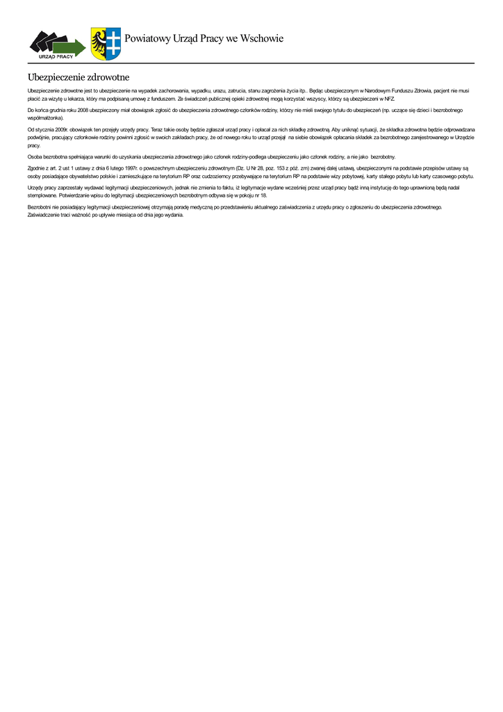 Ubezpieczenie zdrowotne - Powiatowy Urząd Pracy we Wschowie