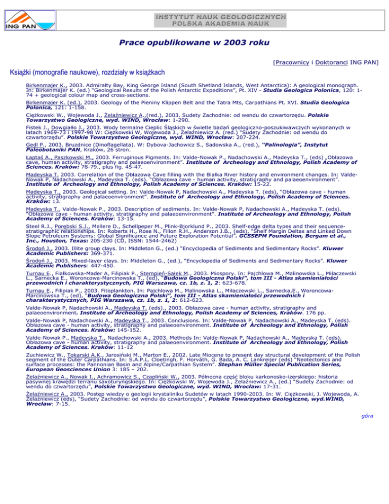 Publikacje archiwalne - Instytut Nauk Geologicznych PAN
