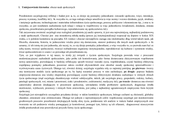 1. Umiejscowienie kierunku: obszar nauk społecznych Przedmiotem socjologicznej refleksji i badań jest: a. to, co dzieje się pomiędzy jednostkami- (stosunki społeczne, więzi, interakcje, procesy wymiany, konflikty itd.), b. wszystko to, co tego rodzaju relacje umożliwia (a więc normy i wzorce działania, język, struktury i instytucje społeczne, technologiczna i materialna infrastruktura życia społecznego, procesy polityczne i ekonomiczne itp.,.) oraz c. to wszystko, co jest rezultatem zachodzenia tych relacji i relacje te współtworzy (a więc jednostkowa świadomość, działania, zmiana społeczna, przeobrażania porządku kulturowego, reprodukowanie się społeczeństwa itd.). Tak zarysowana swoistość socjologii oraz rozległość przedmiotu jej analiz sprawia, iż jest ona najważniejszą, najbardziej podstawową z nauk społecznych. Chociaż jest ona stosunkową młodą nauką (proces jej instytucjonalizacji rozpoczął się dopiero w końcu XIX wieku, a w polskim kontekście na początku XX wieku) i chociaż niewątpliwie zaciąga ona intelektualny dług wśród takich nauk, jak filozofia, ekonomia, historia, to jednocześnie wiedza przez nią dostarczana, stanowi podstawę dla innych nauk społecznych- o ile uznamy, iż ich istotą nie jest jednostka, ale raczej, to, co się dzieje pomiędzy jednostkami, a więc wszystko to, co pozwala nam być ze sobą razem, tworzyć społeczności, tworzyć rozbudowane organizmy instytucjonalne, reprodukować się kulturze i systemom wiedzy, trwać społeczeństwom w czasie i co powoduje ich przeobrażania się. Tym, co jest wyjątkowe w tej nauce, to ścisły jej związek z życiem społecznym. Socjologia powstała wraz z procesami modernizacyjnymi zachodnich społeczeństw, jako próba ich kontrolowania, jako forma dostarczania zlaicyzowanym wspólnotom nowej samowiedzy, pozwalającej w bardziej refleksyjny sposób tworzyć warunki życia, współdziałania, czynić bardziej efektywną współpracę pomiędzy jednostkami, poszerzać zakres swobód obywatelskich oraz określać zasady społecznej sprawiedliwości i wyrównywania szans życiowych. Dlatego też, również dzisiaj, socjologia wypełnia rolę co najmniej potrójną: po pierwsze- tworzy ona teoretyczne modele życia społecznego po to, by lepiej rozumieć procesy w nim zachodzące; po drugie- poprzez badania empiryczne-dostarcza ona wiedzy eksperckiej pozwalającej czynić bardziej efektywnymi działania zachodzące w różnych sferach życia społecznego (stąd socjologię charakteryzuje wielość subdyscyplin, takich, jak socjologia pracy, gospodarki, rodziny, kultury, patologii społecznych, wsi, miasta i przestrzeni, ciała i przedmiotów, codzienności, medycyny itd.), po trzecie- dostarcza ona również samowiedzy aktorom działającym w przestrzeni społecznej, uświadamia źródła problemów społecznych, diagnozuje źródła nierówności, wykluczeń, przemocy i różnych form zniewolenia, jest jedną z najbardziej ugruntowanych empirycznie form krytyki społecznej. Socjologia jest niewątpliwie szczególnie przydatna dzisiaj- w takim kontekście społecznym, którego cechami są złożoność, globalny charakter, zmienność oraz zróżnicowanie. Dlatego też jednym z najważniejszych celów współczesnej socjologii jest monitorowanie gwałtownych procesów przeobrażeń dotykających każdą sferę życia, poddawanie ich analizie w trakcie badań empirycznych oraz tworzenie na ich podstawie wiedzy pomagającej je kontrolować, pomagać tym, którzy są ich ofiarami, diagnozować nieoczywiste źródła przekształceń oraz przewidywać przyszłe formy życia społecznego. 1 2. Wykazanie zgodności kierunku socjologia z misją uczelni i jednostki prowadzącej studia. Socjologia zrodziła się z potrzeby zrozumienia zmian zachodzących w świecie społecznym (czemu służyć ma od jej zarania zarówno dążenie do nieustannego rozwijania teorii socjologicznej jak i dążenie do uchwycenia istoty, kierunków, przyczyn oraz konsekwencji owych zmian za pomocą badań empirycznych). Drugim najważniejszym zadaniem socjologii było i pozostaje w dalszym ciągu dostarczanie wiedzy, dzięki której możliwe i łatwiejsze staje się pozytywne przekształcanie rzeczywistości społecznej. Sformułowane dla kierunku socjologia efekty kształcenia podporządkowane są obu wspomnianym wyżej zadaniom socjologii. Naszym celem jest zatem zarówno (1) przygotowanie studentów do refleksji teoretycznej, (2) wszechstronne przygotowanie ich do roli rzetelnych, obiektywnych badaczy rzeczywistości społecznej umiejących zaplanować, zrealizować oraz zinterpretować wszelkie projekty badawcze jak i (3) przygotowanie ich do roli animatorów działań, które mają zmieniać porządek społeczny na bardziej sprawiedliwy i przyjazny. Zgodnie ze strategią i misją Uniwersytetu im. Adama Mickiewicza kształcenie na kierunku socjologia jest podporządkowane kształtowaniu umiejętności samodzielnego myślenia, respektuje swobodę dyskusji naukowej i opiera się na zasadzie jedności prowadzonych badań naukowych i dydaktyki. Wiedza, umiejętności i kompetencje absolwentów kierunku socjologia mają przygotować ich do wejścia na coraz bardziej konkurencyjny i globalizujący się rynek pracy, na którym najbardziej premiuje się kreatywność, przedsiębiorczość, odwagę nonkonformistycznego myślenia i profesjonalną konsekwencję w realizowaniu przyjętych zamierzeń. Równocześnie – kształcenie na kierunku socjologia podporządkowane jest wytwarzaniu u studentów umiejętności dostosowywania się do wymogów twórczej, efektywnej pracy w zespołach interdyscyplinarnych, w których wyobraźnia socjologiczna oraz wiedza z zakresu nauk społecznych stanowi istotną wartość wnoszoną. Kształcenie na kierunku socjologia jest zgodne ze Strategią Rozwoju WNS UAM na lata 2009-2019, punkt IV.1 – Wprowadzenie wewnętrznego systemu oceny i zapewnienia jakości kształcenia;