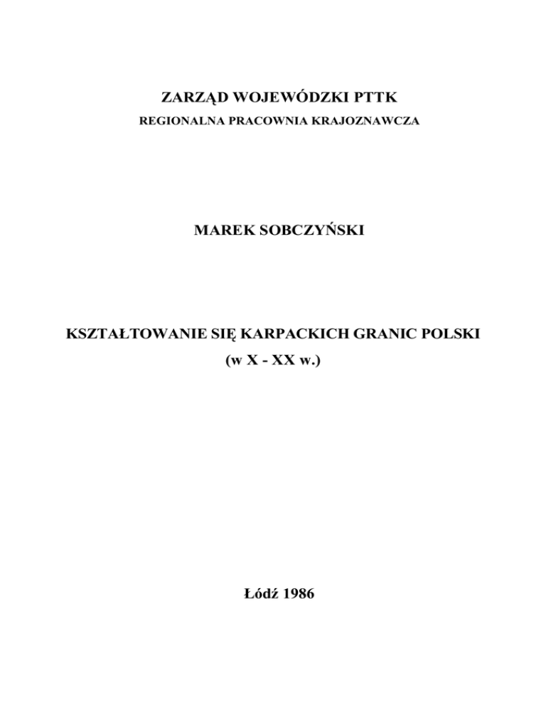 ZARZĄD WOJEWÓDZKI PTTK REGIONALNA PRACOWNIA KRAJOZNAWCZA MAREK SOBCZYŃSKI KSZTAŁTOWANIE SIĘ KARPACKICH GRANIC POLSKI (w X - XX w.) Łódź 1986 2 1. FORMOWANIE SIĘ GRANICY PLEMIENNEJ W KARPATACH Powszechnie znana jest prawidłowość, iŜ wspólnoty plemienne, które tworzą zręby swej państwowości na drodze jednoczenia się dąŜą z zasady do objęcia swym zasięgiem terytorialnym dorzeczy głównych rzek płynących przez ich ziemie. Granicą powstających państw są wówczas działy wodne. Natomiast państwa, które kontynuowały swój rozwój na drodze podbojów, często dochodząc do rozmiarów imperium, opierały swe granice przewaŜnie na rzekach jako barierach strategicznych ułatwiających obronę. Karpaty w zasadzie nie stanowiły zapory pomiędzy Polską a Węgrami. Przez przełęcze i przełomy rzek trwał ruch ludności. MoŜna zaobserwować w skali ogólnokarpackiej pewną prawidłowość, a mianowicie przewagę tendencji dośrodkowych nad odśrodkowymi. Ekspansja osadnicza szczepów osiadłych na zewnętrznych stokach łuku karpackiego kierowała się zawsze do jego wnętrza. Tak postępowali Rumuni, Rusini, Polacy, Słowacy posuwając się w górę strumieni, przez lesiste grzbiety, ku Nizinie Węgierskiej i Siedmiogrodowi. W rejonie Karpat Zachodnich istnieje szereg obniŜeń sprzyjających przepływowi ludności. W Beskidzie Zach. Olza wiodąc ku przeł. Jabłonkowskiej obniŜającej się do 553 m n.p.m. ułatwia przejście do dol. Kysucy i Wagu, a ta ku dolinie Dunaju. Przełęcz Sieniawska i Spytkowicka wiodą z dolin Raby i Skawy do dol. Orawy i Dunajca. Najłatwiej jednak było przekroczyć Karpaty przez doliny Dunajca i Popradu, którędy wiódł prastary szlak z Polski na Niz. Węgierską. Tymi drogami płynął prąd osadniczy na Górne Węgry (jak nazywano dawniej Słowację), krzyŜując się z płynącym od zach. i pd. prądem słowackim (a później takŜe niemieckim). Być moŜe Lechici przekroczyli Karpaty jeszcze przed powstaniem państwa Polskiego, ale ich osadnictwo było nadzwyczaj rzadkie i sporadyczne. Dlatego powszechnie przyjmuje się, Ŝe do wieku X granic pomiędzy lechickimi a słowackimi plemionami stanowił bałtycko - czarnomorski dział wodny na głównym grzbiecie Karpat, od źródeł Wisły i Olzy po źródła Sanu, co jest zgodne z prawidłowością rozwoju państw plemiennych. Gdy Wiślan wchłonęło Państwo Polskie a Słowaków - Węgry w połowie X w. granica ta zyskała po raz pierwszy rangę granicy politycznej. 3 2. ZDOBYCZE PIERWSZYCH PIASTÓW W okresie panowania pierwszych Piastów Polska cechowała się duŜą ekspansywnością. Być moŜe juŜ w 981 r. Mieszko podbił Morawy ale przed śmiercią je utracił. Istnieją dość powaŜne przesłanki, Ŝe zarówno przed przyłączeniem do Państwa Polskiego plemienia Wiślan jak i pod koniec panowania Mieszka I, Kraków wraz z całą Małopolską był pod wpływami lub nawet naleŜał do Państwa Wielkomorawskiego. Świadczy te o fakcie, Ŝe Karpaty, choć niewątpliwie stanowiły dogodną granicę naturalną nie zawsze były de facto granicą polityczną. Największy zasięg na Górnych Węgrzech osiągnęła Polska za panowania Bolesława Chrobrego. W 1003 r. przyłączył on Górne Węgry, Morawy a na 18 miesięcy takŜe Czechy. W dokumencie zwanym Kronika Polsko-Węgierska (datowanym na pierwszą poł. XIII w. - MPH, t. I) zachował się dokładny opis granic Polski z tego okresu. Polska sięgała do Dunaju po Ostrzyhom, skąd granica biegła skrajem Niz. Węgierskiej, koło Egeru do Cisy i dalej do rz. Ciepłej (Topla) i do głównego grzbietu Karpat w okolicy grodu Halicz na górze o tej samej nazwie, pod przeł. UŜocką, gdzie zbiegały się granice Polski, Rusi i Węgier. Za wojskami Chrobrego szli zapewne osadnicy i do dziś po całej Słowacji rozrzucone są polskie osady a w świadomości górali funkcjonuje mit, iŜ sprawiedliwa granica Polski szła "na mosty gieńciańskie" tj. koło miasta Göncz nad Hornadem, na pd. od Koszyc juŜ na Węgrzech, gdzie dziś znajduje się przejście graniczne Hidasnemeti (podaje to Łapiński 1862). Po śmierci Bolesława Chrobrego Polska utraciła znaczną część zdobyczy terytorialnych. W 1032 r. Mieszko I, którego państwo napadli wrogowie z dwóch stron, utracił Morawy na rzecz Czech (choć pewne źródła podają, Ŝe zagarnęło je Cesarstwo Rzymskie juŜ w 1018 r. za Ŝycia Bolesława) oraz prawdopodobnie Słowację na rzecz Węgier. Straty te potwierdził układ z cesarzem w Merseburgu w 1032 r. Pomimo tych zmian granice Polski nie cofnęły się aŜ do grzbietu Karpat lecz przebiegały linią dolin Wagu i Hornadu, grzbietem NiŜnych Tatr. O przynaleŜności do Polski tzw. prowincji Wag wspomina list cesarza Henryka IV do biskupa w Pradze z 1086 r. określający te obszary jako część ziemi krakowskiej. Śladami tej granicy są do dziś przetrwałe nazwy geograficzne jak miasto Hranice nad Bečvą na Morawach czy Broniszcze, StraŜa, StraŜów. Dalej ku wschodowi granicą Polski był Hornad. 4 3. PROCES OGRANICZANIA POLSKIEGO POSIADANIA NA GÓRNYCH WĘGRZECH Granica zakarpacka przetrwała do XII w., kiedy to w następstwie testamentu Krzywoustego osłabła pozycja Polski. Puszcza zakarpacka była nadal słabo zasiedlona i powoli wkraczało w nią osadnictwo węgierskie realizowane siłami słowackimi i niemieckimi, przesuwając granice Węgier ku północy. Pewne dokumenty wskazują, Ŝe w 1108 r. Bolesław Krzywousty wydając swą córkę za Borysa syna króla węgierskiego Kolmana nadał jej w posagu ziemię spiską z zastrzeŜeniem jej zwrotu po śmierci córki. Nie mogło to jednak oznaczać utraty Zakarpacia przez Polskę skoro późniejsze nadania dowodzą, Ŝe królowie polscy wykonywali tam efektywnie swą władzę. Kształtowanie się południowej granicy trzeba rozpatrywać wobec odmiennego rozwoju sytuacji w odcinkach regionalnych odrębnie na Śląsku Cieszyńskim, Orawie i Spiszu. Na tych odcinkach