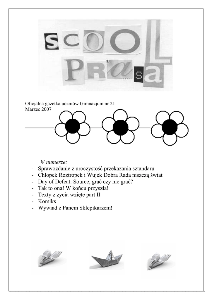 ,,Scool Prasa” oficjalna gazetka uczniów Gimnazjum nr 21 w Krakowie.