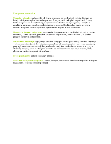 Ekwipunek uczestnika kolonii