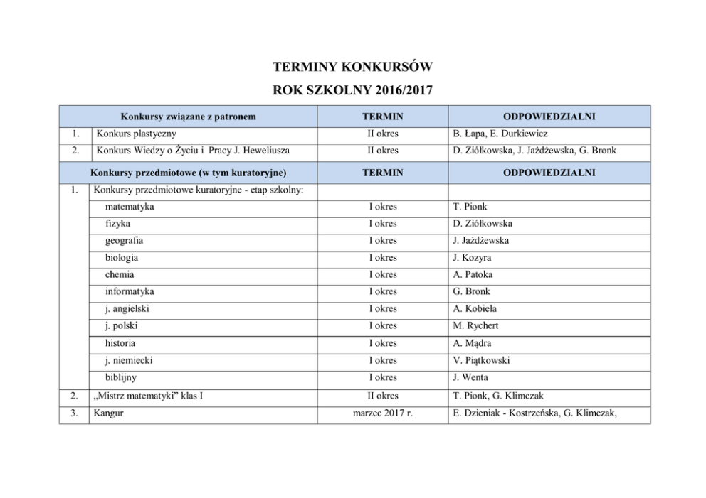 terminy konkursów rok szkolny 2016/2017