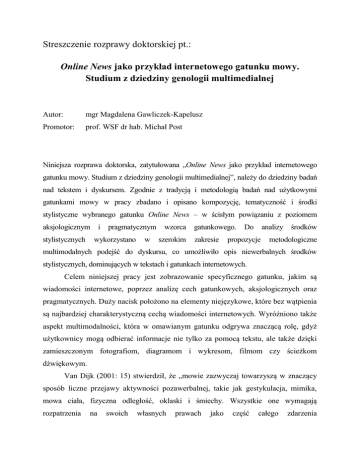 Streszczenie rozprawy doktorskiej pt.: Online News jako przykład