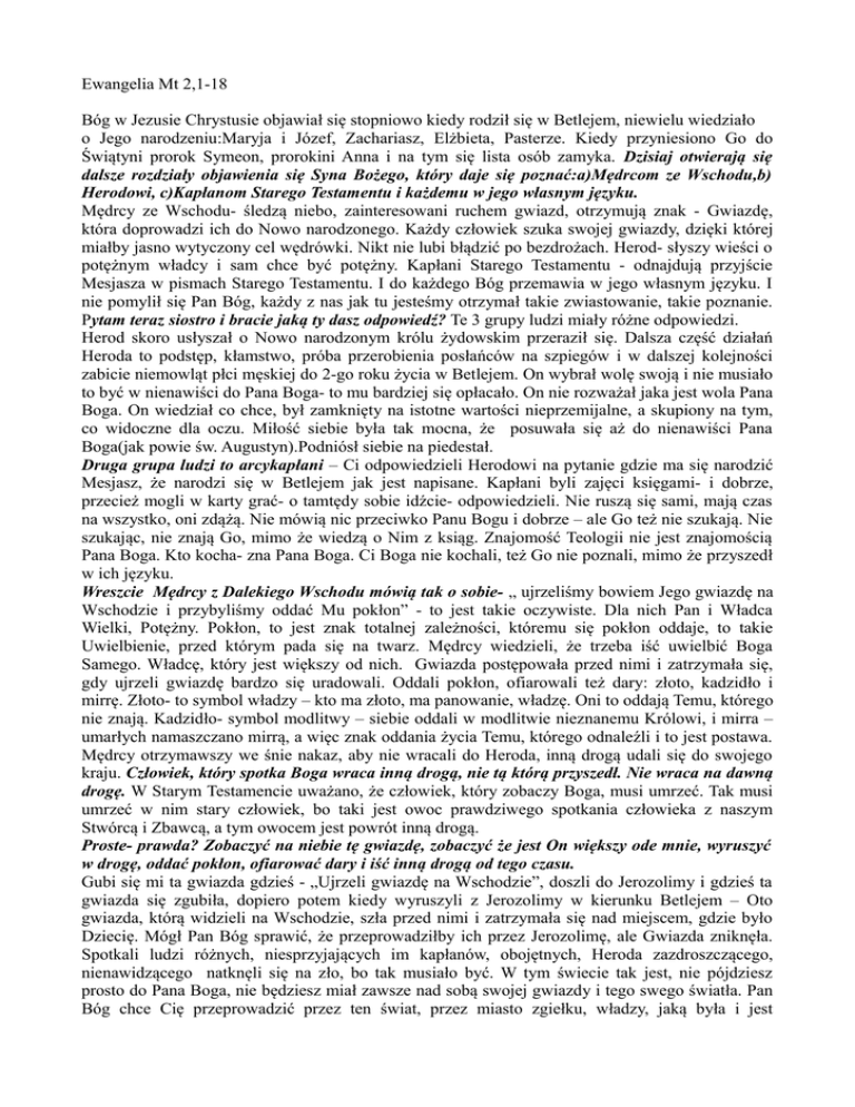 Ewangelia Mt 2,1-18 Bóg w Jezusie Chrystusie objawiał się