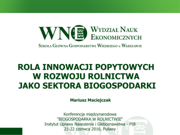 Rola innowacji popytowych w rozwoju rolnictwa jako sektora