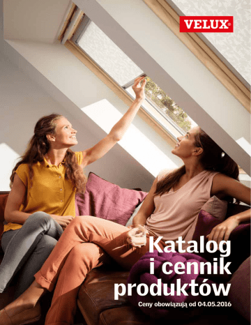 Katalog i cennik produktów Ceny obowiązują od 04.05.2016 1 Sprawdź nasze promocje na www.velux.pl/promocje 2 VELUX to trafny wybór dla Ciebie i polskiego społeczeństwa! 75 lat doświadczenia w produkcji okien dachowych Wszystkie okna dachowe spełniają wymagania nowych Warunków Technicznych, które wejdą w życie 1 stycznia 2017 Największy producent i eksporter okien w Polsce Nowoczesne i przyjazne środowisku fabryki w Gnieźnie, Namysłowie i Wędkowach należące do Grupy VELUX i spółek siostrzanych Duży i solidny pracodawca w Polsce Wsparcie FUNDACJI VELUX dla polskich organizacji pozarządowych 3500 1,5 Zatrudnienie w Polsce: > Roczne przychody Grupy VELUX i spółek siostrzanych w Polsce: > osób x fabryki 100 > Wartość grantów FUNDACJI VELUX dla polskich organizacji pozarządowych polskich dostawców 1000 > partnerów handlowych w latach 2003-2015 3 Szczegóły, które tworzą jakość 1 Wytrzymały i ciepły profil okienny ThermoTechnology™, wykonany z klejonego impregnowanego i lakierowanego drewna sosnowego łączonego z wysokoizolacyjnym tworzywem EPS* Doświadczenie firmy VELUX pozwoliło opracować konstrukcje okienne o wyjątkowej funkcjonalności i jakości dostępne w atrakcyjnych cenach. Zobacz te z cech naszych okien, które czynią je szczególnie wartymi wyboru do Twojego domu, abyś przez wiele lat cieszył się ich wyglądem, trwałością i wygodnym użytkowaniem. 3 Zawiasy samosmarowne umożliwiające łatwą obsługę okna i obrót do mycia o 180° 4 Szyba bezpieczna ** o klasie odporności antywłamaniowej P2A od wewnątrz pomieszczenia oraz hartowana szyba zewnętrzna w standardzie i wiele innych opcji, np. antywłamaniowa, superenergooszczędna 6 5 3 7 4 Duża powierzchnia szyby zapewniająca dobry dostęp światła i zyski ciepła z energii słonecznej w okresie grzewczym 4 1 8 9 4 Konstrukcja zamków i zawiasów zapewnia wysokie bezpieczeństwo użytkowania z 3. klasą odporności na uderzenie 5 Wygodny, nowoczesny uchwyt okna zintegrowany z klapą wentylacyjną; okna GZL i GLL z klamką u dołu dostępne w tej samej cenie W pakiecie korzystniej! Oszczędzaj, wybierając zestawy produktów. Pakiety VELUX to gwarancja atrakcyjnej ceny. Szukaj ich na kolejnych stronach. 4 2 Odporny na wilgoć profil okienny ThermoTechnology™, wykonany z rdzenia drewnianego po obróbce wysokotemperaturowej, pokrytego warstwą malowanego na biało poliuretanu 5 Świeże przefiltrowane powietrze, bez owadów i zanieczyszczeń zapewnia łatwy w obsłudze moduł wentylacyjny z wymiennym filtrem 6 5 7 3 4 5 Komfort bez przeciągów z systemem uszczelek zapewniającym 4. najwyższą klasę szczelności* 2 8 6 Okno fabrycznie przygotowane do montażu nowoczesnego sterowania elektrycznego, niewidocznego po zamknięciu okna*** 9 7 Okno fabrycznie przygotowane do łatwego montażu akcesoriów przeciwsłonecznych i dekoracyjnych VELUX w systemie Pick&Click™ 20 LAT GWARANCJI Z BDX Możliwość przedłużenia gwarancji do 20 lat dla okien zamontowanych z zestawami izolacyjnymi BDX. Dostępna w ciągu 2 lat od zakupu okien, po przesłaniu kwestionariusza przedłużenia gwarancji. Pełny tekst gwarancji dostępny na velux.pl *nie dotyczy okien GZL **nie dotyczy okien z szybami 50 i 51 *** dotyczy okien obrotowych z górnym otwieraniem 8 Innowacyjnie zaprojektowane, szczelne oblachowanie zewnętrzne, montowane bez wkrętów, na zatrzaski 9 Fabrycznie przygotowane wręby pod kątowniki, umożliwiające montaż na dwóch poziomach – standardowym i obniżonym VELUX 5 Standard Standard Plus 1128,- 1128,- Rozmiar 78 x 118 cm (MK06) 1354,- Rozmiar 78 x 118 cm (MK06) 1354,- Rozmiar 78 x 118 cm (MK06) Rozmiar 78 x 118 cm (MK06) Dolne Górne Dolne Górne otwieranie otwieranie otwieranie otwieranie GZL 1051 GZL 1051 B GLL 1055 GLL 1055 B Do wysokiej ścianki kolankowej Do wysokiej ścianki kolankowej Uchwyt otwierający u góry Klamka na dole Uchwyt otwierający u góry Klamka na dole Drewno klejone Drewno klejone Drewno klejone Drewno klejone Zintegrowana wentylacja* Dwustopniowa wentylacja* Zintegrowana wentylacja* Dwustopniowa wentylacja* Filtr zatrzymujący kurz i owady Filtr zatrzymujący kurz i owady Filtr zatrzymujący kurz i owady Filtr zatrzymujący kurz i owady Szyba energooszczędna Szyba energooszczędna Konstrukcja ThermoTechnologyTM z lepszym bilansem energetycznym Konstrukcja ThermoTechnologyTM z lepszym bilansem energetycznym Bezpieczna klejona szyba wewnętrzna Bezpieczna klejona szyba wewnętrzna Dodatkowa ochrona przed UV Dodatkowa ochrona przed UV Wyższa szczelność i izolacyjność dźwiękowa Wyższa szczelność i izolacyjność dźwiękowa Niższy współczynnik przenikania ciepła przy montażu obniżonym** Niższy współczynnik przenikania ciepła przy montażu obniżonym** Strona 14 Strona 15 Strona 18 *Okna VELUX z zamkniętą wentylacją zapewniają szczelność analogiczną do okien bez wentylacji i posiadają wymagania budynków z wentylacją mechaniczną. Okna Standard Plus i Premium zapewniają 4. najwyższą klasę szczelności. **Montaż obniżony z zestawem izolacyjnym BDX z potwierdzonym testami niższym współczynnikiem przenikania ciepła dla okna ***Klamka do samodzielnego montażu 6 Strona 19 Komfortowe produkty Premium Okna poliuretanowo-drewniane Premium Okna klapowoobrotowe Strona 24 1614,- 1653,- Rozmiar 78 x 118 cm (MK06) Rozmiar 78 x 118 cm (MK06) Górne Dolne otwieranie otwieranie GLU 0055 Okna superenergooszczędne Strona 26 GLU SD001 Okna z pakietem wyciszania hałasu deszczu Do wysokiej ścianki kolankowej Uchwyt otwierający u góry Klamka na dole*** Nie wymagający konserwacji rdzeń drewniany pokryty poliuretanem Nie wymagający konserwacji rdzeń drewniany pokryty poliuretanem Zintegrowana wentylacja* Zintegrowana wentylacja* Filtr zatrzymujący kurz i owady Filtr zatrzymujący kurz i owady Konstrukcja ThermoTechnologyTM z lepszym bilansem energetycznym Konstrukcja ThermoTechnologyTM z lepszym bilansem energetycznym Bezp