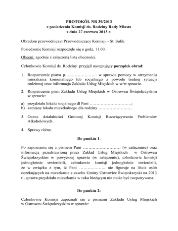 Protokół nr 39 z posiedzenia Komisji ds