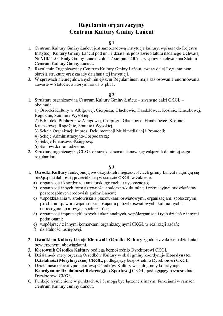 Regulamin organizacyjny Centrum Kultury Gminy Łańcut