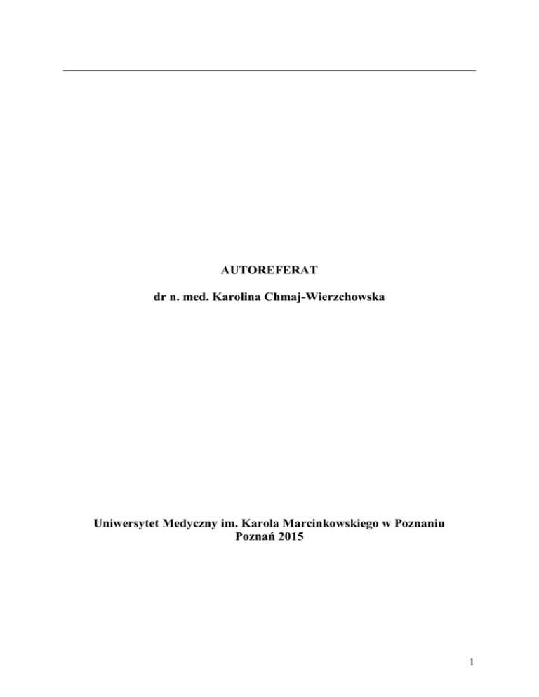 AUTOREFERAT dr n. med. Karolina Chmaj