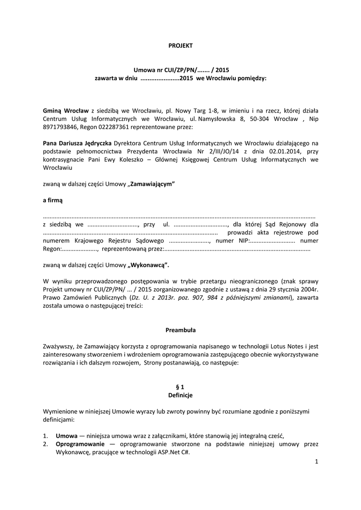 projekt umowy - BIP - Centrum Usług Informatycznych we Wrocławiu