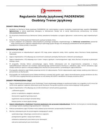 Regulamin Szkoły Językowej PADEREWSKI Osobisty Trener