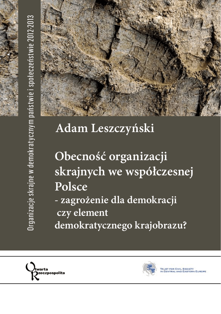 Organizacje skrajne w demokratycznym państwie i społeczeństwie 2012-2013 Adam Leszczyński Obecność organizacji skrajnych we współczesnej Polsce - zagrożenie dla demokracji czy element demokratycznego krajobrazu? Organizacje skrajne w demokratycznym państwie i społeczeństwie 2012-2013 Adam Leszczyński Adiunkt w Instytucie Studiów Politycznych PAN Obecność organizacji skrajnych we współczesnej Polsce - zagrożenie dla demokracji czy element demokratycznego krajobrazu? N a portalu Narodowcy.net natknąłem się na zdjęcie zatytułowane „Jobbik ratuje wioskę przed cyganami”. Na zdjęciu brodaci i wąsaci panowie - oraz parę pań - w czarnych mundurach z charakterystycznymi, przywodzącymi na myśl czasy Wojaka Szwejka czapkami, stoją na jakiejś drodze. W tle ubogie zabudowania i las sztandarów z węgierskimi kolorami i chrześcijańskimi krzyżami. Anonimowy autor portalu (którego motto brzmi „Polska od nas wymaga, byśmy byli pokoleniem wielkim”) cieszył się z sukcesów węgierskich towarzyszy: Członkowie i sympatycy węgierskiego Jobbiku zorganizowali manifestację przeciwko cygańskiemu terrorowi w miejscowości Gyšngyšspata w północnych Węgrzech. Akcja zgromadziła kilkaset osób, zaniepokojonych przestępczymi działaniami mniejszości romskiej na swoich terenach. (...) Ostatecznie zgromadziło się prawie 2 tysiące osób, a wśród nich obecny był prezes Jobbiku Gabor Vona, który powiedział, że rozmawiał wcześniej z mieszkańcami wsi, którzy ze łzami w oczach mieli opowiadać mu o cygańskim terrorze, którego doświadczają. Oczywiście widok umundurowanych bojówek skrajnie prawicowej partii zastraszających mniejszość etniczną (w odwecie, rzecz jasna, za „cygański terror”) musi wywołać dreszcze u każdego, kto pamięta, czym takie zabawy skończyły się w latach 30. i 40. minionego wieku. Przywołuję ten przykład, żeby pokazać, że może być gorzej - dużo gorzej - niż w Polsce, gdzie organizacje skrajne mają, w porównaniu z wieloma krajami regionu, minimalne poparcie. Nasi narodowcy piszą o sukcesach Jobbiku z tęsknotą - jak o nieosiągalnym marzeniu. Według danych węgierskich ośrodków badania opinii poparcie dla Jobbiku na Węgrzech rosło systematycznie od 2009 do początków 2012 r., kiedy przekroczyło 23 proc. Węgrów zdecydowanych na wzięcie udzia Jobbik broni wsi przed cyganami, wiadomość podpisana „MM”, 7 marca 2011 r., http://narodowcy.net/jobbik-broni-wsi-przed-cyganami/2011/03/07/ łu w wyborach (potem spadło do 18 proc.). Poparcie dla polskich „narodowców” nigdy nie rejestrowało się w ogólnokrajowych sondażach. Nie uważam więc, żeby organizacje skrajne - głównie skrajna prawica, bo organizacje skrajnej lewicy są jeszcze bardziej marginalne - były zagrożeniem dla demokracji w sensie formalnym. W wyborach uzyskują ułamki procenta głosów. Nie ma siły porównywalnej z węgierskim Jobbikiem, o NSDAP nie wspominając. Obalenie demokratycznego porządku nam raczej nie grozi. Być może są jednak zagrożeniem dla demokracji w innym, mniej oczywistym wymiarze. Ich idee są cały czas obecne. Zatruwają język, którym ludzie mówią o polityce - zwłaszcza po prawej stronie. Są też przez nią tolerowane - w tym przez ludzi, których o skrajne sympatie trudno posądzić. Tu dostrzegam zagrożenie. Zaproponuję pewną hipotezę, dlaczego tak się dzieje. Jestem dziennikarzem, a dziennikarze lubią anegdoty. Zacznę więc od osobistego doświadczenia: z ideami skrajnymi spotykam się na codzień, najczęściej i w najbardziej skrajnej formie na anonimowych forach internetowych (w tym na forach prowadzonych na Gazeta.pl). „A nos jakiś taki semicki” - napisał jakiś czytelnik, rzecz jasna anonimowo, pod moim komentarzem politycznym umieszczonym w sieci. Analizowanie kształtu nosa autora i zastanawianie się nad jego metryką to tylko jedna z wielu niezbyt subtelnych sugestii, że jestem tu obcy, i w zasadzie gdzieś powinienem sobie pójść, a przynajmniej zamilknąć, żeby nie zakłócać narodowej harmonii prawdziwych Polaków. Wszyscy jednak wiemy, że internetowa anonimowość uwalnia u ludzi (w codziennym życiu być może przyzwoitych) najgorsze instynkty. Chciałbym więc tu opisać sprawę trochę poważniejszą, bo dotyczy ludzi znanych - i tego, jak tolerują, a przynajmniej patrzą przez palce, na idee skrajnej prawicy. Ta opowieść ma, jak sądzę, także pewien morał. 23 marca 2012 r. Jarosław Marek Rymkiewicz przegrał w drugiej instancji proces wytoczony mu przez wydawcę „Gazety Wyborczej” za słowa, że jej redaktorzy byli „duchowymi spadkobiercami Komunistycznej Partii Polski”, „wychowanymi w nienawiści do polskiego krzyża” i pragnęli, by „Polacy w końcu przestali być Polakami”. Sąd nakazał mu przeprosić i wpłacić 5 tys. złotych na cel charytatywny. Ipsos dla serwisu Portfolio.hu, 15 marca 2012 r. Komentując wyrok, Rymkiewicz powiedział portalowi wPolityce. pl: „Cała ta sprawa pokazuje, że możliwa jest nie tylko śmierć cywilna, ale także cywilne samobójstwo. I oto na naszych oczach Adam Michnik, wytaczając mi proces o poglądy, popełnił cywilne samobójstwo. Mamy zatem do czynienia z cywilnym trupem”. Po tym wywiadzie Rymkiewicza na forum portalu wPolityce.pl - medium o zdecydowanie prawicowych sympatiach i takiej też publiczności - wylał się potok wyzwisk przewyższający wszystko, z czym miałem do czynienia do tej pory. „Wzbiera bluzg antysemicki” - pisałem w „Gazecie Wyborczej” 24 marca. „Katolicy do boju! Wskazać Wam >parcha< do likwidacji?”. Komentarze, które zalały portal wPolityce.pl po procesie Jarosława M. Rymkiewicza z Agorą, wprost nawołują do przemocy. Aż trudno cytować, ale trzeba. Zachowuję ortografię i interpunkcję: „Już dawno tą siedzibę i drukarnię tej antypolskiej szmaty (p0)winno się spalić wraz z tym bolszewicko-żydowskim ścierwem szechterem!!!