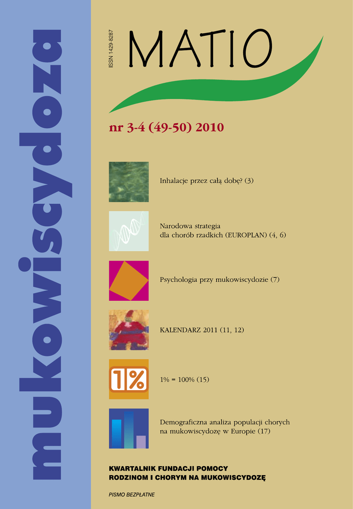 MATIO 3-4/2010 1 MATIO 3-4/2010 (49-50) Od Redakcji Zespół redakcyjny: Stanisław Sitko, Paweł Wójtowicz, Marcin Mleczko, lek. med. Piotr Dziadek, Jacek Zieliński Drodzy Czytelnicy, To kolejny już rok z MATIO. Niedawno mieliśmy dzień zadumy i refleksji Adres redakcji: przy grobach naszych najbliższych, a już za pasem Sylwester z życzenia- 30-507 Kraków, ul. Celna 6 mi, które układamy sobie przez długi czas. Wyznaczamy sobie kolejne tel./fax (12) 292 31 80 www.mukowiscydoza.pl małe i wielkie cele. Ale jak zwykle przy wigilijnym stole będziemy życzyć e-mail: [email protected] sobie przede wszystkim ZDROWIA i SPOTKANIA NA KOLEJNEJ WIGILII. Opracowanie graficzne: Jacek Zieliński Czytelnikom życzę ZDROWIA i radości z życia. Naukowcom sukcesów w poszukiwaniach leku na mukowiscydozę. Fundacji kolejnych Druk: 15 lat (w nadchodzącym roku będziemy obchodzili swoje 15-lecie). Drukarnia Technet, Kraków Naszym darczyńcom nadal wielkiego serca, ale też dużych dochodów. Wydawca: Lekarzom zdrowia do opieki nad naszymi podopiecznymi i jak najmniej Fundacja MATIO (nakład: 5000 egz.) Fundacja dziękuje Medycynie Praktycznej za dystrybucję czasopisma. Redakcja nie odpowiada za treść ogłoszeń i reklam. W sprawie zamieszczania reklam prosimy pracy oraz wiele wdzięczności ze strony rodzin za poświęcony czas dla naszych podopiecznych. Wszystkim Państwu przekazujemy symboliczny opłatek, którym chcemy się z Wami podzielić. Wesołych Świąt Bożego Narodzenia oraz Szczęśliwego Nowego Roku Życzy redakcja MATIO kontaktować się z panem Pawłem Wójtowiczem, tel. (12) 292 31 80, 603 751 001, listownie pod adresem Redakcji lub pocztą elektroniczną. Boże, użycz mi pogody ducha, abym pogodził się z tym, czego nie mogę zmienić, odwagi, abym zmieniał to, co mogę, i mądrości, bym odróżniał jedno od drugiego. Wysyłając SMS o treści „DP MUKO” pod nr: 72624, 73624, 74624, pomagasz fundacji koszt SMS-a (z VAT): 2,44 zł, 3,66 zł, 4,88 zł 2 MATIO 3-4/2010 Inhalacje przez całą dobę?! W artykule nie będę przedstawiał nowatorskiego urządzenia do inhalacji, tylko naturalny sposób na poprawę odporności chorego na mukowiscydozę. W kwartalniku „MATIO” w roku 2007 przeczytałem, że w Izraelu trwają badania kliniczne nad szczepionką na mukowiscydozę. Podążając tym tropem, nawiązałem kontakt z Benjaminem Pinkasem, organizatorem rehabilitacji chorych nad Morzem Martwym. Latem 2008 r. spotkałem się z nim w Pradze podczas światowej konferencji poświęconej mukowiscydozie. Benjamin przekazał mi wiele informacji na temat warunków klimatycznych panujących nad Morzem Martwym i możliwości leczenia klimatycznego chorych na mukowiscydozę. Bardzo mnie to zainteresowało, ponieważ moja córka Emilka, u której mukowiscydozę zdiagnozowano w 1996 r., każdego roku kilkakrotnie chorowała na zapalenie płuc, a leczenie antybiotykami podawanymi dożylnie osłabiało jej odporność. Podjąłem decyzję. Na przełomie stycznia i lutego 2009 r. pojechałem z Emilą na leczenie klimatyczne nad Morze Martwe. Efekty? Niezwykłe! Emilka wróciła z nową motywacją do walki z chorobą. W najgorszym zdrowotnie okresie – wczesną wiosną – chodziła normalnie do szkoły i ani razu nie zachorowała. Pożegnanie z Benjaminem Pierwsze przeziębienie pojawiło się dopiero po wycieczce szkolnej w maju, ale w przeciwieństwie do poprzednich trwało krótko i nie zakończyło się zapaleniem płuc. Przez całe lato Emilka aktywnie wypoczywała; gołym okiem widać było poprawę samopoczucia fizycznego i psychicznego. W ciągu 16-dniowego pobytu nad Morzem Martwym jej zdolność oddechowa FEV1 zwiększyła się o 9%, osiągając poziom 86%. A wszystko to dzięki uni- katowemu mikroklimatowi panującemu w jedynym takim miejscu na ziemi. Codzienne spacery i spanie przy otwartym oknie to były nasze inhalacje. Powracając do tytułowych 24-godzinnych inhalacji, to właśnie tam jest to możliwe, dlatego że Morze Martwe leży ponad 400 m poniżej poziomu mórz, a ciśnienie atmosferyczne jest o około 10% wyższe niż w Polsce. Wyższe ciśnienie atmosferyczne powoduje zwiększenie zawartości tlenu w powietrzu o około 10%, stąd lepsze dotlenienie płuc. Woda Morza Martwego, a co za tym idzie powietrze, zawiera niespotykane nigdzie indziej stężenie soli mineralnych (tabela poniżej), dlatego podczas pobytu nie używaliśmy inhalatora. Woda tego morza zawiera 26 unikatowych minerałów służących zdrowiu i urodzie, a 12 z nich występuje tylko w tym miejscu. Porównanie zawartości głównych pierwiastków w wodzie Morza Martwego w stosunku do wody Morza Śródziemnego Morze Martwe mg/l Morze Śródziemne mg/l chlor 224 900 22 900 magnez 44 000 1490 sód 40 100 1490 wapń 17 200 1350 potas 7650 470 brom 5300 76 Duża zawartość bromu w powietrzu powoduje uspokojenie i pełen relaks. Suche i czyste powietrze niezawierające alergenów działa kojąco na cały układ oddechowy. W okresie zimowym panują tu optymalne warunki do rehabilitacji chorych na mukowiscydozę. Ciśnienie atmosferyczne osiąga 1060 mbar, a temperatura powietrza wynosi 20–24°C w dzień i 12–15°C w nocy. Duża ilość minerałów w powietrzu tworzy swoisty, naturalny filtr przeciw promieniowaniu UV – jest to jedyne miejsce na Ziemi, gdzie można się opalać do woli bez przykrych konsekwencji w postaci poparzenia słonecznego. Na dobre samopoczucie wpływają tak- MATIO 3-4/2010 3 że kąpiele w wodzie morskiej, w której można się unosić, nie tonąc. Efekty zdrowotne zaobserwowane u Emilki zgadzają się z wynikami badań przeprowadzonych przez Uniwersytet Medyczny w Haifie i wiele innych placówek badawczych. Poprawa funkcji oddechowych po trzytygodniowym pobycie utrzymuje się nie mniej niż 3 miesiące, następuje dotlenienie krwi, zwiększa się masa ciała chorego i ta tendencja utrzymuje się przez dłuższy czas. Zwiększa się również ogólna odporność orga