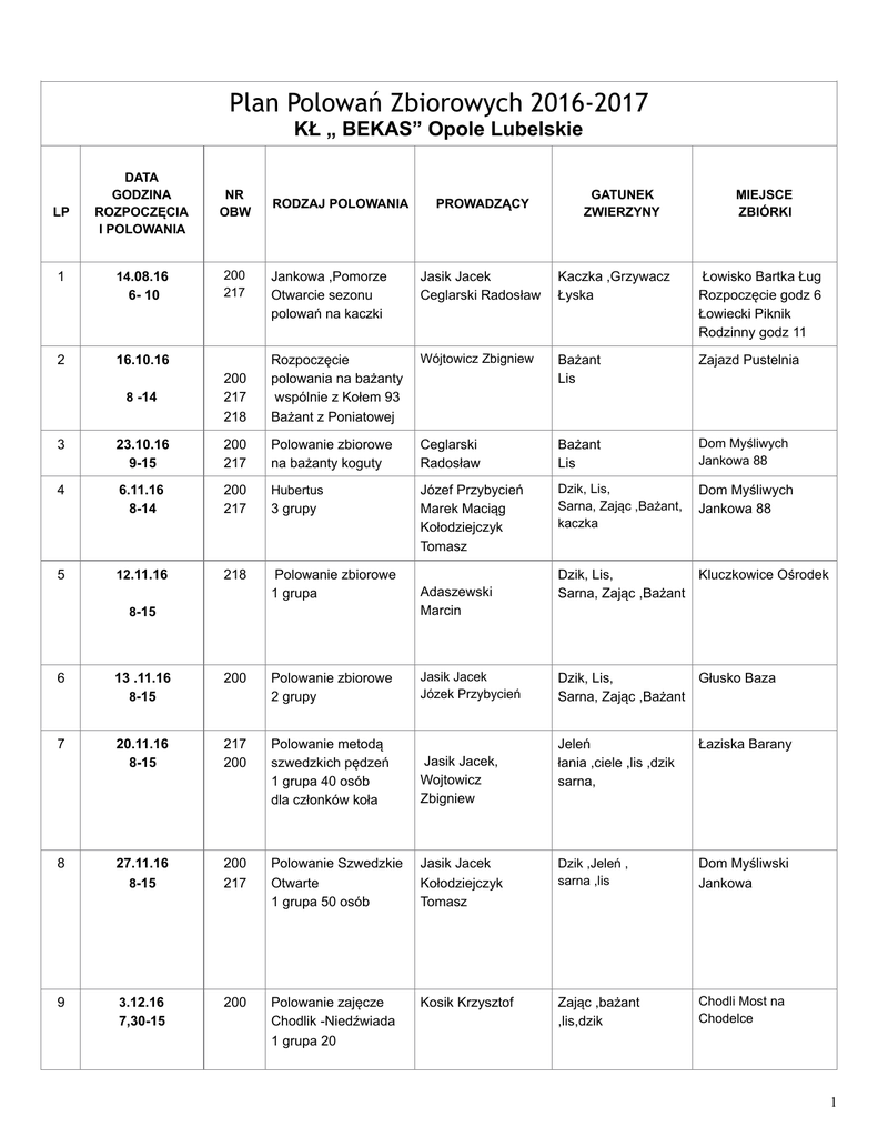 Plan Polowań Zbiorowych 2016-2017