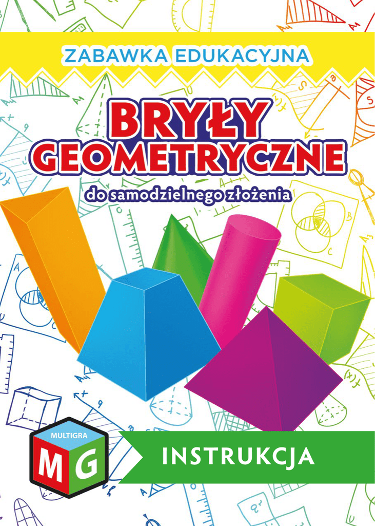 INSTRUKCJA Zawartość pudełka: 1. Bryły geometryczne - 10 szt. 2. Dwustronna taśma klejąca - 1 szt. 3. Instrukcja Ilość graczy: 1+ Wiek: 4+ „Bryły geometryczne do samodzielnego złożenia” to zestaw 10 brył. Dziecko od pierwszych chwil swojego życia poznaje przestrzenną złożoność świata. Zestaw brył geometrycznych ma jeszcze lepiej uzmysłowić dziecku zależności między bryłami oraz rozwija wyobraźnię. Wśród 10 brył znajdują się te najprostsze, takie jak sześcian czy graniastosłup oraz te trochę bardziej skomplikowane, jak np. ostrosłup z sześciokątem w podstawie. Zabawka jest wykonana z materiału, który umożliwia wsypywanie do brył różnych sypkich produktów np. kaszy czy ryżu. Dzięki takiej zabawie dzieci poznają pojęcie objętości. Przebieg zabawy: Rozłóż zestaw na stabilnej płaskiej powierzchni, najlepiej stole. Wybierz bryłę, którą chcesz złożyć. Każda bryła ma już wycięty obrys, oznaczone miejsca zgięć i "skrzydełka" do złożenia. Skrzydełka są zaznaczone jako zakreskowane pola. Poproś o pomoc rodziców lub inną osobę dorosłą o docięcie odpowiednich kawałków taśmy klejącej. Następnie naklej na zakreskowanych polach kawałki dwustronnej taśmy, ale jeszcze nie odklejaj warstwy ochronnej. Możesz teraz zagiąć wszystkie boki, żeby zobaczyć jak będzie wyglądać cała bryła. Następnie odrywaj warstwę ochronną taśmy z poszczególnych skrzydełek i po kolei sklejaj ze sobą boki wybranej bryły. Nie odklejaj warstwy ochronnej ze wszystkich kawałków taśmy na raz, gdyż możesz później mieć problemy ze złożeniem bryły. Uwaga! Jeśli chcesz wsypywać do środka brył różne sypkie materiały, pamiętaj, żeby nie zaklejać wszystkich boków! Możesz w ten sposób złożyć wszystkie bryły i budować z nich różne konstrukcje lub wykorzystać jako pomoc przy nauce matematyki. Zestaw brył może być użyty wielokrotnie, jeśli przed rozpoczęciem zabawy wykonacie ich ksero. Dzięki temu można bawić się na wiele sposobów np. złożyć kilka sześcianów, a do każdego wsypać kilka różnych materiałów. W dalszej części instrukcji przedstawiamy wizualizacje wszystkich brył dostępnych w zestawie, wraz z podpisami. 1 1. Sześcian 2. Graniastosłup 3. Graniastosłup z trójkątem w podstawie 4. Walec 5. Stożek 6. Ostrosłup ścięty 2 7. Czworościan 8. Ostrosłup z sześciokątem w podstawie 9. Ostrosłup z trójkątem w podstawie 10. Ostrosłup z kwadratem w podstawie Zasady bezpiecznego użytkowania: Ostrzeżenia: Nieodpowiednie dla dzieci w wieku poniżej 3 lat. Istnieje ryzyko zadławienia się małymi elementami. Prosimy zachować opakowanie ze względu na podane informacje. Opakowanie nie jest częścią zabawki. Stan zabawki należy regularnie kontrolować. Przechowywanie: Produkt należy przechowywać w suchym pomieszczeniu, z dala od źródeł ciepła oraz w oryginalnym opakowaniu. Utylizacja: Po zakończeniu użytkowania usuwać zabawkę w sposób bezpieczny i z dbałością o środowisko Deklaracja WE: Produkt został oznaczony symbolem CE ponieważ jest zgodny z dyrektywą bezpieczeństwa zabawek. PRODUCENT: F.H.U. „MULTIGRA” ul. Telewizyjna 19 80-209 Chwaszczyno www.multigra.com.pl 3 Symbol 0-3 oznacza, że zabawka jest nieodpowiednia dla dzieci w wieku poniżej 3 lat.