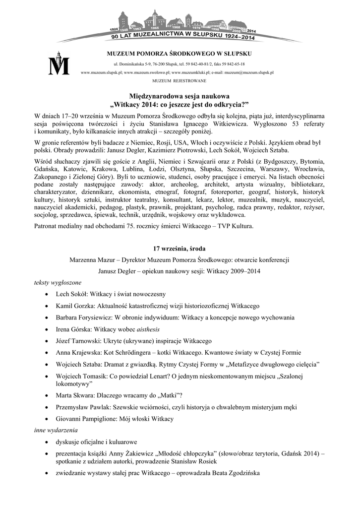 Międzynarodowa sesja naukowa „Witkacy 2014: co