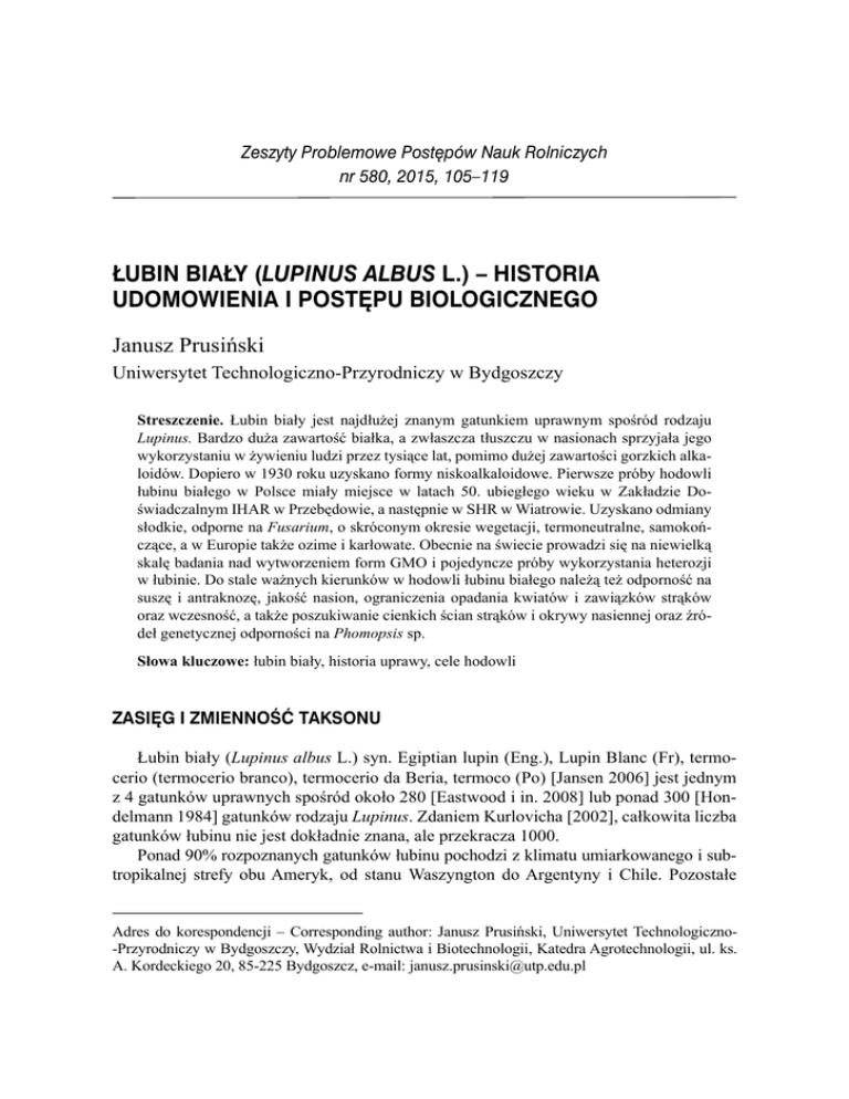 Łubin biały (Lupinus albus L.) - Zeszyty Problemowe Postępów