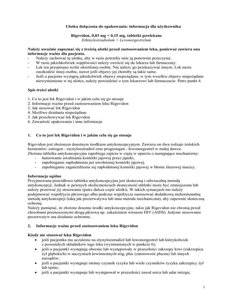 2. Informacje ważne przed zastosowaniem leku Rigevidon