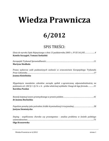 Wiedza Prawnicza nr 6/2012 roku