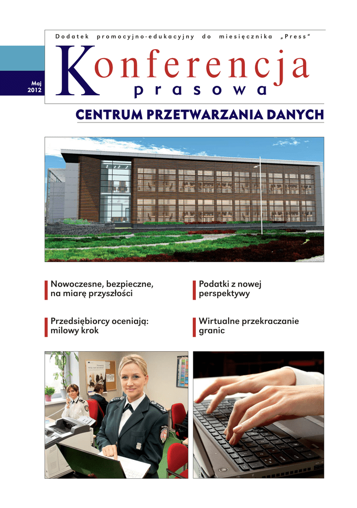 Dodatek Maj 2012 promocyjno-edukacyjny do miesięcznika „Press“ K o np fr ea rs eo nw ca j a CENTRUM PRZETWARZANIA DANYCH Nowoczesne, bezpieczne, na miarę przyszłości Podatki z nowej perspektywy Przedsiębiorcy oceniają: milowy krok Wirtualne przekraczanie granic Program rogram og e e-Podatki projekt e-Deklaracje 2 projekt e-Rejestracja projekt e-Podatki www.epodatki.mf.gov.pl www www.epodatki.mf.gov ki.mf.gov ov.p p pl CENTRUM PRZETWARZANIA DANYCH Rozwój sieci internetowej i coraz szerszy do niej dostęp dają polskiej administracji podatkowej i celnej nowe możliwości rozwoju własnych kanałów kontaktowania się z podatnikami. W dobie bankowości elektronicznej i dostępu do prywatnych finansów z każdego miejsca i w dowolnym czasie obywatele oczekują też znoszenia barier w komunikacji z urzędami. Administracja na takie potrzeby musi odpowiadać. Już dziś wiele udało się w tym zakresie zrealizować, ale nadal ważne jest prowadzenie intensywnych prac nad tym, by świadczenie usług dla przedsiębiorców i obywateli za pośrednictwem Internetu przez administrację stało się proste, powszechne i bezpieczne. Realizacja programów Ministerstwa Finansów oferujących e-usługi dla obywateli – e-Podatki, e-Cło – wymaga więc zapewnienia odpowiedniej infrastruktury teleinformatycznej. Pracując nad nowymi udogodnieniami, musimy być świadomi zagrożeń związanych z zapewnieniem odpowiedniego poziomu bezpieczeństwa gromadzonych, przechowywanych i przetwarzanych informacji, a także gwarantować nieprzerwane działanie systemów. Dlatego też, na potrzeby resortu finansów, powstał nowoczesny ośrodek Centrum Przetwarzania Danych w Radomiu. To tu znajdzie się baza danych gromadząca informacje o należnościach i rozliczeniach podatników indywidualnych, przedsiębiorców, instytucji i urzędów będących płatnikami podatku, operacji celnych i innych. Dzięki zabezpieczeniom zastosowanym przy budowaniu ośrodka możemy mieć pewność, że wszelkie nasze dane oraz udostępniane usługi mają zapewniony najwyższy poziom ochrony. Dla podatników, przedsiębiorców i obywateli oznacza to podniesienie jakości elektronicznych usług publicznych, zapewnienie wysokiego poziomu bezpieczeństwa przetwarzanych informacji oraz ochronę danych przed dostępem osób nieupoważnionych. Dla administracji publicznej to wymierne obniżenie kosztów realizacji jej zadań dzięki przejściu z obecnej struktury rozproszonych systemów informatycznych do nowej skonsolidowanej i scentralizowanej bazy. Wszystkie podejmowane działania zmierzają do zmiany polskiej administracji podatkowej i celnej oraz wyposażenia jej w nowoczesne narzędzia zarządzania informacją. Stajemy się administracją świadczącą usługi publiczne wysokiej jakości, efektywną i dostępną. Sam korzystam z wprowadzonych udogodnień – przesyłam swój PIT przez Internet. Jacek Rostowski Minister Finansów Ministerstwo Finansów aktywnie realizuje działania mające na celu budowę nowoczesnej administracji podatkowej i celnej. Podstawą dla systemów teleinformatycznych, realizowanych w ramach programów e-Podatki i e-Cło, jest centralna, bezpieczna i wysoko wydajna infrastruktura teleinformatyczna dostarczona w wyniku realizacji projektu Konsolidacja i centralizacja systemów celnych i podatkowych (KiC). Celem projektu KiC jest usprawnienie procesów zarządzania infrastrukturą i elastyczne wykorzystanie zasobów IT dla systemów wspierających usługi podatkowe i celne. W efekcie zakłada się zmniejszenie wydatków związanych z utrzymaniem infrastruktury teleinformatycznej poprzez uzyskanie efektu synergii usług w centralnym środowisku Centrum Przetwarzania Danych Ministerstwa Finansów. Na przestrzeni ostatnich lat – widząc, że cyfryzacja jest jednym z filarów nowoczesnej administracji – Służba Celna i administracja podatkowa w sposób aktywny realizują inicjatywę udostępniania usług elektronicznych i stopniowego odchodzenia od wymogu używania dokumentów papierowych. Służba Celna dostarczyła już usługi elektroniczne związane z procedurami importowymi, eksportowymi oraz przemieszczaniem wyrobów akcyzowych. W 2011 roku zostało przyjętych i obsłużonych przez Służbę Celną wyłącznie w formie elektronicznej bez przedstawiania deklaracji papierowych 58 proc. deklaracji w procedurach przywozowych oraz 100 proc. deklaracji wywozowych i tranzytowych. Łącznie w 2011 roku przyjęto i obsłużono 3 816 948 zgłoszeń celnych i deklaracji podatkowych w formie elektronicznej. Najbliższe lata powinny przynieść uruchamianie kolejnych działań zmierzających do wdrażania szerszego zakresu usług świadczonych drogą elektroniczną. Jest to zbieżne z założeniami Strategii Lizbońskiej zakładającej tworzenie właściwych warunków rynkowych oraz ograniczanie istniejących barier i obciążeń administracyjnych przedsiębiorców. Temu ma służyć wdrożenie koncepcji Single Window i One-Stop-Shop zapewniających załatwianie wszystkich formalności dotyczących importu, a obsługiwanych dotychczas przez kilka instytucji, w jednym miejscu poprzez jedno okienko elektroniczne. Nowoczesne środowisko infrastrukturalne ułatwi resortowi finansów wdrożenie nowych usług dla obywateli i przedsiębiorców świadczonych drogą elektroniczną, a przygotowanych przez programy e-Cło i e-Podatki. Jacek Kapica Podsekretarz Stanu w Ministerstwie Finansów, Szef Służby Celnej Program e-Podatki to realizacja największego z priorytetowych zadań informatycznych stojących przed administracją skarbową. Zmiana filozofii podejścia do potrzeb podatników musi mieć silne oparcie w narzędziach umożliwiających nowoczesny i sprawny kontakt z klientami urzędów skarbowych. Dlatego też z dużą determinacją kontynuujemy realizację tego programu, który jest bez precedensu w historii współczesnej administracji podatkowej. Niedawno ogłosiliśmy przetarg, który ma wyłonić gł