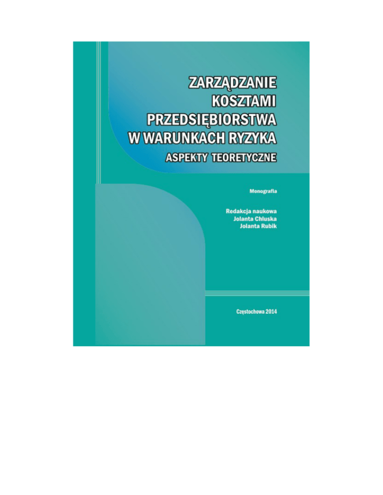 zarządzanie kosztami przedsiębiorstwa w warunkach ryzyka