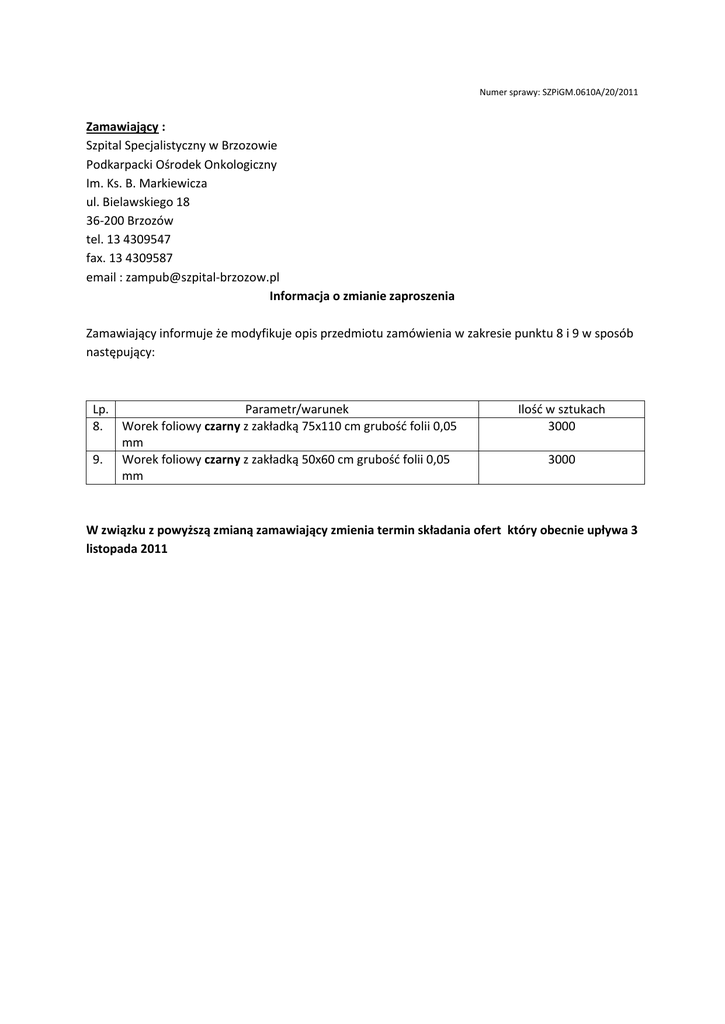 Modyfikacja SIWZ - SZPITAL BRZOZÓW