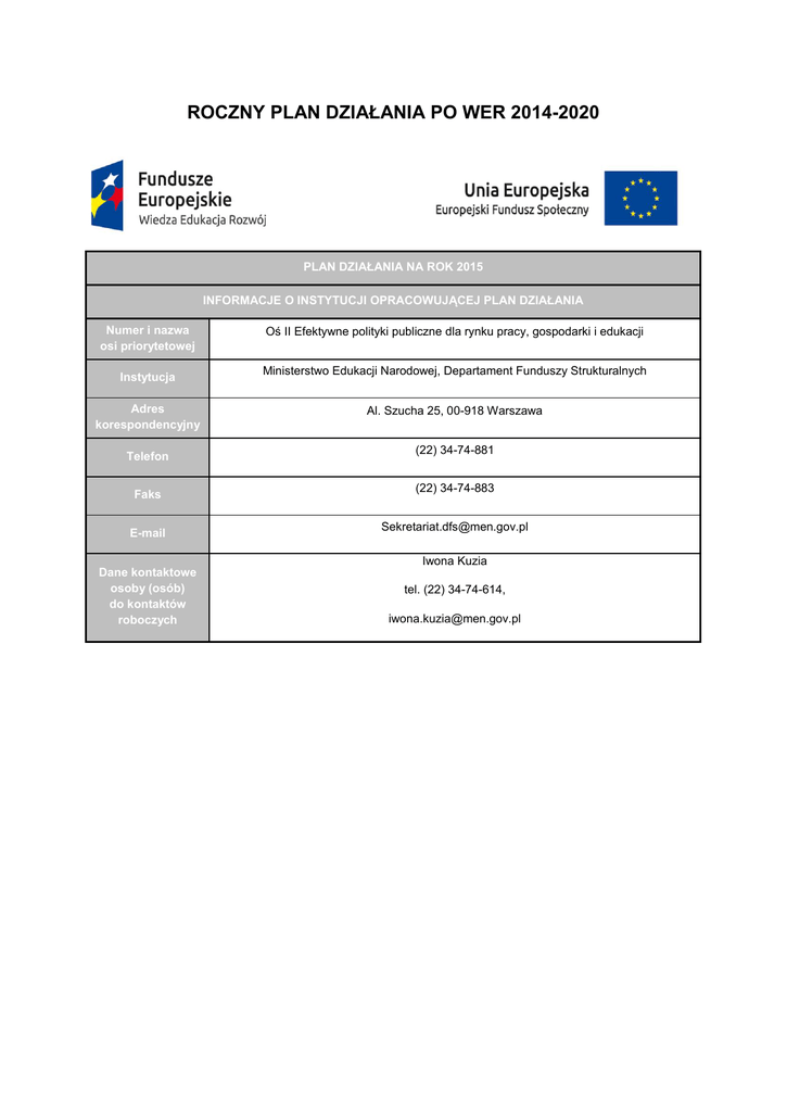 ROCZNY PLAN DZIAŁANIA PO WER 2014-2020