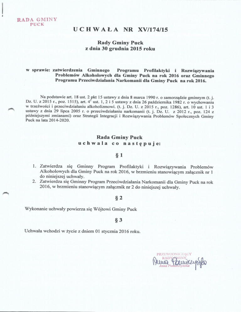 Uchwała Nr XV.174.15 – zat. GPPiRPA dla