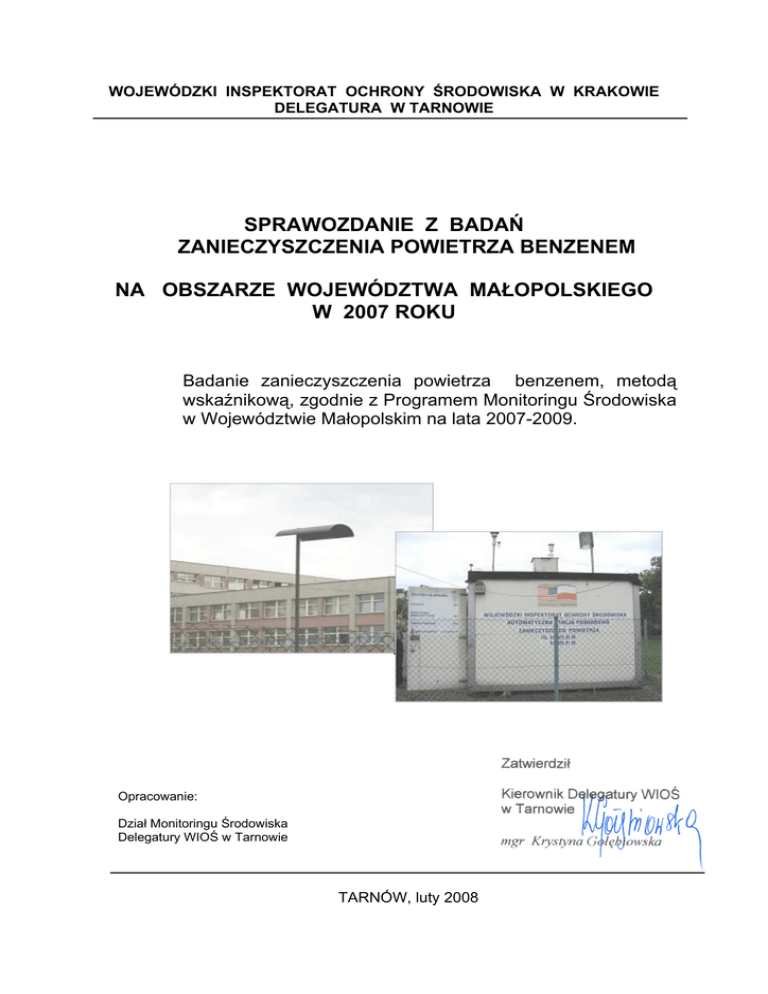 Sprawozdanie z badań zanieczyszczenia powietrza benzenem na