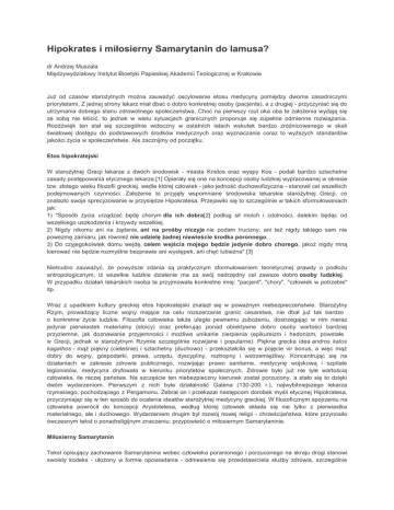 Czy etos medycyny hipokratejskiej wzbogaconej przez postawę Dobrego Samarytanina odchodzi dziś do