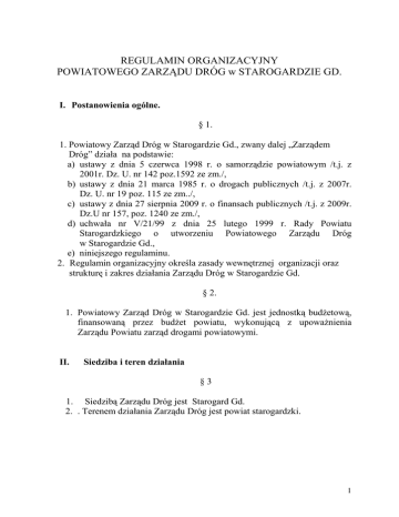 Regulamin organizacyjny - Powiatowy Zarząd Dróg w Starogardzie