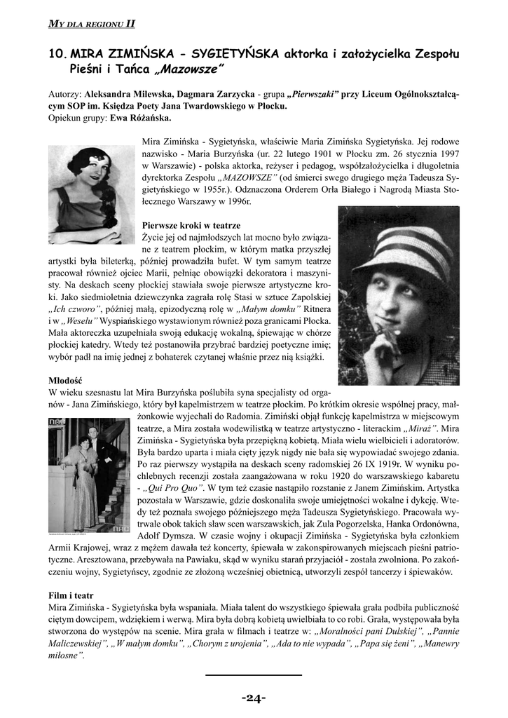-24- 10. MIRA ZIMIŃSKA - SYGIETYŃSKA aktorka i założycielka