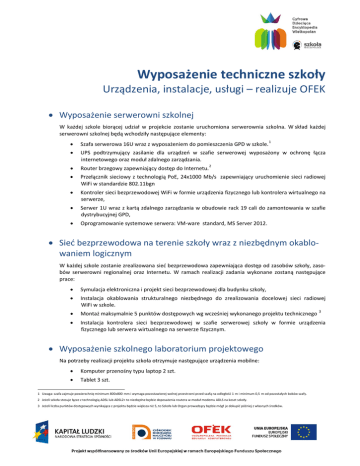 Wyposażenie techniczne szkołyOpis serwerowni, sieci, laboratorium