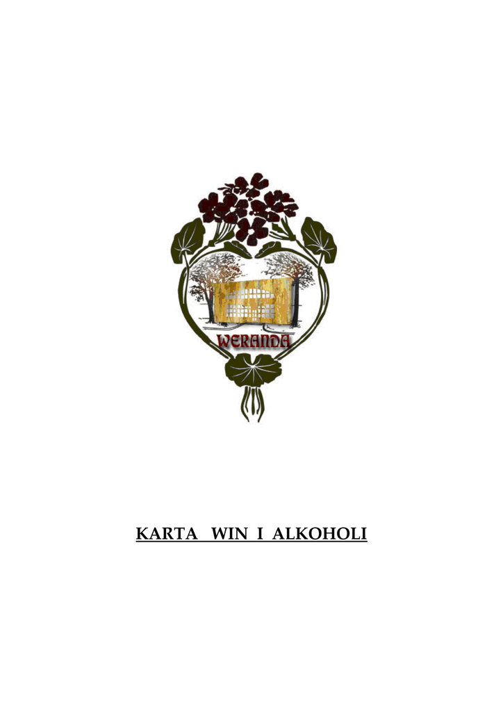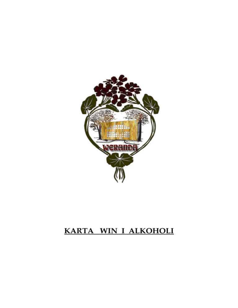 KARTA WIN I ALKOHOLI WINA BIAŁE Casa Solar Viura 2015 kieliszek 15cl 13,00 kieliszek 15cl 18,00 kieliszek 15cl 19,00 Vino de la Tierra de Castilla, Hiszpania Prosecco Brut-Val D’Oca D.O.C. Treviso, Włochy Rewelacyjne włoskie wino musujące z eleganckim kwiatowym bukietem. Świetna równowaga pomiędzy kwasowością a łagodnością. Chablis-Emile Durand 2014 A.C. Chablis, Grand Vin de Bourgogne, Francja Wino wytrawne w smaku, świeże i orzeźwiające. Bukiet kwiatów i białych owoców z dodatkiem masła i trawy. Posiada subtelny mineralny posmak. Wino wyprodukowane ze szczepu: 100% Chardonnay. Casa Solar Tempranillo 2013 WINA CZERWONE kieliszek 15cl 13,00 kieliszek 15cl 19,00 Vino de la Tierra de Castilla, Hiszpania Ventisquero Reserva Syrah 2013 D.O. Valle del Maipo, Chile Bardzo dobrze zbudowane wino, dojrzewa przez okres 10 miesięcy w stalowych, nierdzewnych kadziach i beczkach z amerykańskiego dębu. Charakteryzuje się ciemno-czerwoną barwą oraz aromatami dojrzałych śliwek, dymu i wanilii. Znakomite do każdego rodzaju pieczonego i grillowanego mięsa oraz dojrzałych serów. La Vieille Ferme 2014 butelka 37,5cl 55,00 A.C. Cotes du Ventoux, Domaines Perrin & Fils,Francja Blend Grenache (50%), Syrah (20%), Mourvedre (15%) oraz Cinsault (15%). Wonna nutka pieprzu, anyżu i brązowego cukru tworzy dobre połączenie z owocowymi aromatami. Pełne, dobrze zrównoważone z posmakiem toffi i karmelu. Polecane jako aperitif oraz do większości potraw. WINA SŁODKIE Mr. Bibi kieliszek 15cl 13,00 kieliszek 10cl 25,00 Hiszpania Oremus Tokaji Aszu 3 Puttonyos Węgry Barwa złocistego bursztynu z delikatnymi pomarańczowymi refleksami. Delikatny bukiet o subtelnych nutach brzoskwiń, miodu i orzechów. Bardzo harmonijne i delikatne, znakomite do deserów i ciast. 20 Years Old Port Osborne kieliszek 10cl 35,00 Portugalia Jest to nic innego jak Tawny Port, które spędziło minimum 20 lat w dębowych beczkach. Czas ten przyczynił się do powstania trunku subtelnego i niezwykle delikatnego, w którym szlachetna słabość łączy się z intensywnym i niezapomnianym bukietem. Chateau Roumieu Sauternes 2013 butelka 37,5cl 110,00 AOC Sauternes, Bordeaux, Francja Najsławniejsze słodkie wino z Bordeaux, być może najsławniejsze słodkie wino świata produkowane z późno zbieranych gron, dotkniętych szlachetną pleśnią. Klasycznym towarzystwem sauterna jest sławny i równie prestiżowy pasztet z gęsich wątróbek. SZAMPANY Moet & Chandon 75cl 340,00 A.C. Champagne, Francja Pełny, hojny i dynamiczny. Jeden z najbardziej popularnych szampanów na świecie. Zrównoważony, pełen życia i wyrafinowany. Szampan inspirujący zmysły, ceniony za aksamitny i subtelny posmak. Nagradzany przez koneserów. Nicolas Feuillatte Rose Brut 75cl 370,00 A.C. Champagne, Francja Nicolas Feuillatte Champagne Rose Brut to eleganckie, dobrze wyważone i mistrzowsko skomponowane wino. Kolor łososioworóżowy, dyskretne bąbelki. Nos charakteryzuje się lekką owocowością z wyróżnieniem jeżyn, malin i czerwonej porzeczki. W palecie wino jest bardzo lekkie i świeże. Idealne do podania jako aperitif, deser oraz do mięs z sosami żurawinowymi. Bollinger Special Cuvee 75cl 390,00 A.C. Champagne, Francja Zawiera do 10% win typu reserve z roczników, których najstarszy dojrzewał 10 lat. Bollinger leżakował w butelkach nie mniej niż 3 lata. Charakteryzuje się czystym i eleganckim bukietem. Aromaty płatków róży, prażonych orzechów i cytrusów. Soczyste i muskularne, z długim posmakiem owoców południowych. Dom Perignon Brut 75cl 990,00 A.C. Champagne, Francja Dom Perignon to jeden z najznakomitszych szampanów na świecie. Dla wielu znawców najlepszy- na aukcjach osiąga najwyższe ceny ze wszystkich szampanów. Produkowany jest tylko z wyjątkowych roczników, starzony w dębowych beczkach i długo leżakowany w butelkach. Cristal 75cl 1200,00 A.C. Champagne, Francja Pierwszy Cristal powstał z inicjatywy cara Rosji Aleksandra II, który wysłał swojego szambelana do Remis po najlepsze wina szampańskie. Swoją nazwę zawdzięcza kryształowym butelkom, do których był rozlewany na polecenie cara. O jego powstaniu każdej wiosny decyduje dyrektor firmy i potomek Louisa Roederera, degustuje on klarowane wina, z których powstaje najlepszy szampan na świecie. Dzięki najwyższym wymaganiom, smak tego trunku nie zmienił się od dziesiątków lat. Cava Rigol Brut WINA MUSUJĄCE 75cl 90,00 75cl 100,00 Hiszpania Wytrawne, hiszpańskie wino musujące. Doskonałe jako aperitif i do owoców morza. Mucha Sekt Chardonnay Brut Czechy Czeskie wino musujące pochodzące z Moraw. Wytrawne, z wybijającym się melonem, brzoskwinią oraz bananem. Aromat urzeka świeżością i owocowością, delikatne bąbelki z odrobiną wanilii w tle. Prosecco Brut-Val D’Oca 75cl 120,00 D.O.C. Treviso-Włochy Rewelacyjne włoskie wino musujące z eleganckim kwiatowym bukietem. Świetna równowaga pomiędzy kwasowością a łagodnością. Roczniki win mogą ulec zmianie / Year may vary WINA BIAŁE FRANCJA Moulin de Gassac Classic 2014 75cl 80,00 IGP Pays d’Herault / Langwedocja / Mas de Daumas Gassac Bladozłota, połyskliwa barwa. Aromaty kwiatów i egzotycznych owoców. W ustach czyste, orzeźwiające, żywe z mocnymi smakami owoców i miękkim, lekko tłustym finiszem, 100% Sauvignon Blanc . Chablis-Emile Durand 2014 75cl 130,00 A.C. Chablis, Grand Vin de Bourgogne Wino wytrawne w smaku, świeże i orzeźwiające. Bukiet kwiatów i białych owoców z dodatkiem masła i trawy. Posiada subtelny mineralny posmak, typowe i eleganckie Chablis. Wino wyprodukowane ze szczepu: 100% Chardonnay. Riesling Hugel 2013 75cl 150,00 A.C. Alsace Najszlachetniejszy spośród wszystkich białych win Riesling jest wytrawnym winem, które swoja arystokratyczną moc najpełniej osiąga w Alzacji. Odmiana charakteryzująca się delikatną owocowością, potężną strukturą i subtelną kwasowością. Subtelna owocowość Rieslin