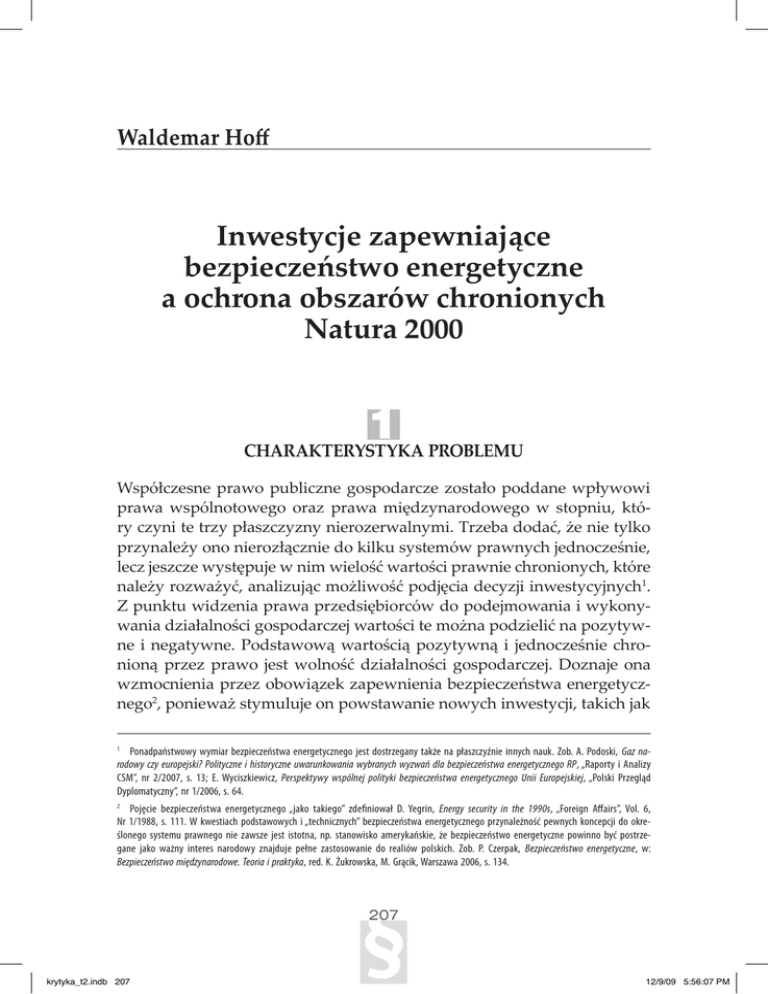 Nr 1/1988, s. 111. W kwestiach podstawowych i „technicznych” bezpieczeństwa energetycznego przynależność pewnych koncepcji do określonego systemu prawnego nie zawsze jest istotna, np. stanowisko amerykańskie, że bezpieczeństwo energetyczne powinno być postrzegane jako ważny interes narodowy znajduje pełne zastosowanie do realiów polskich. Zob. P. Czerpak, Bezpieczeństwo energetyczne, w: