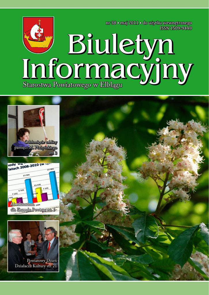 nr 38 • maj 2011 • do użytku wewnętrznego ISSN 1509-9448 Biuletyn Informacyjny Starostwa Powiatowego w Elblągu Odsłonięcie tablicy pamięci M. Płażyńskiego str. 3 Absolutorium dla Zarządu Powiatu str. 3 Powiatowy Dzień Działacza Kultury str. 21 Biuletyn Informacyjny Odsłonięcie tablicy pamięci Macieja Płażyńskiego 20 maja 2011roku, Elżbieta Płażyńska, żona tragicznie zmarłego pod Smoleńskiem Macieja Płażyńskiego, marszałka Sejmu RP, odsłoniła w Zespole Szkół w Pasłęku pamiątkową tablicę. Maciej Płażyński był uczniem LO w Pasłęku w latach 1972–1976. W uroczystości wzięli udział najbliżsi marszałka Płażyńskiego: żona Elżbieta z córką Katarzyną oraz brat Wojciech z żoną. Obecni byli także parlamentarzyści: senator Sławomir Sadowski, posłowie Tadeusz Naguszewski i Witold Gintowt-Dziewałtowski. Nie zabrakło także przedstawicieli władz samorządowych powiatu elbląskiego, miasta Pasłęka, Młynar i innych gmin powiatu. Władze wojewódzkie reprezentowały przedstawicielki Wojewody Warmińsko-Mazurskiego i Kuratora Oświaty. Po powitaniu znakomitych gości przez starostę Sławomira Jezierskiego, wicestarosta Maciej Marek Murdzia Romanowski przypomniał wszystkim zebranym najważniejsze fakty z życia marszałka Płażyńskiego. Następnie goście dzielili się swoimi osobistymi wspomnieniami o bohaterze uroczystości. W części artystycznej uczniowie szkoły zaprezentowali montaż słowno-muzyczny. Spotkanie było także okazją do zaprezentowania wyników realizacji zadania pn. „Modernizacja budynku Zespołu Szkół w Pasłęku z przeznaczeniem na uruchomienie kształcenia w zawodzie technik hotelarstwa” dofinansowanego ze środków Regionalnego Programu Operacyjnego Warmia i Mazury na lata 2007–2013. Starosta Jezierski podziękował dyrektorowi szkoły Edwardowi Skalijowi za osobiste zaangażowanie w przygotowanie i stały nadzór nad wykonaniem inwestycji. Z kolei dyrektor Skalij podziękował osobom zaangażowanym w realizację zadania, wręczając im okolicznościowe statuetki. Absolutorium dla Zarządu Powiatu za rok 2010 Edwarda Mazurkiewicz P odczas sesji Rady Powiatu w dniu 13 maja br. radni przyjęli uchwałę w sprawie absolutorium. Podstawą do udzielenia absolutorium było sprawozdanie z wykonania budżetu, pozytywnie zaopiniowane przez Regionalną Izbę Obrachunkową. Ponadto sprawozdanie było również oceniane oraz uzyskało pozytywną opinię poszczególnych komisji, a przede wszystkim Komisji Rewizyjnej, która sporządziła wniosek absolutoryjny. Z analizy sprawozdań finansowych wynika, że budżet wykonano w wielkościach wyższych niż w latach ubiegłych. Dochody budżetowe Dochody budżetowe osiągnęły kwotę 54 773 tys. zł. Wykres przedstawia porównanie 3 Starostwo Powiatowe w Elblągu głównych źródeł dochodów budżetowych, zrealizowanych w okresie 2008–2010. Na wzrost dochodów istotny wpływ miały dotacje przyznane na realizację projektów dofinansowanych z budżetu Unii Europejskiej. Powiat Elbląski uzyskał dofinansowanie na inwestycje drogowe z funduszy pomocowych w kwocie 5615 tys. zł, dotację z budżetu państwa na remonty dróg prowadzone w ramach Narodowego Programu Przebudowy Dróg Lokalnych 2204 tys. zł 4 oraz dofinansowanie przez gminy remontów dróg 1655 tys. zł. Poza tym przyznano dotację celową na remont drogi w Nowakowie ze środków przeznaczonych na usuwanie skutków klęsk żywiołowych 721 tys. zł oraz subwencję z budżetu państwa w wysokości 205 tys. zł na modernizację mostu w Brudzędach. Ponadto na wielkość dochodów duży wpływ miały dotacje celowe przyznane w łącznej kwocie 1756 tys. zł, z Europejskiego Funduszu Społecz- Biuletyn Informacyjny nego na projekty realizowane przez jednostki organizacyjne powiatu. Przychody zrealizowano w łącznej wysokości 4104 tys. zł. Przychodami były: kredyt inwestycyjny udzielony przez w Bank Ochrony Środowiska z linii kredytowych EIB oraz CEB – razem 986 tys. zł, spłata pożyczki udzielonej na rozpoczęcie działalności Szpitala Powiatowego 297 tys. zł, nadwyżka z lat ubiegłych 2821 tys. zł. Wydatki budżetowe Wydatki budżetowe zrealizowane na kwotę 57 152 tys. zł, w tym: wydatki bieżące 46 443 tys. zł, majątkowe 10 708 tys. zł. W ramach wydatków bieżących zrealizowano: Wynagrodzenia, które wraz z pochodnymi wyniosły 21 744 tys. zł, z czego: wynagrodzenia osobowe 16 369 tys. zł, bezosobowe 1045 tys. zł, dodatkowe wynagrodzenia roczne 1188 tys. zł, składki na ubezpieczenie społeczne 2696 tys. zł oraz fundusz pracy 382 tys. zł. Dotacje udzielane na realizację zadań powiatu łącznie na kwotę 2316 tys. zł, w tym: dla stowarzyszeń na zadania z zakresu turystyki 4 tys. zł, kultury 75 tys. zł, sportu 70 tys. zł, opieki społecznej 6 tys. zł, za pobyt dzieci w placówkach opiekuńczo-wychowawczych w innych powiatach 266 tys. zł, za pobyt dzieci w rodzinach zastępczych na terenie innych powiatów 407 tys. zł, na pomoc poszkodowanym w wyniku pożaru w Gminie Tolkmicko 10 tys. zł, w Gminie Pasłęk 10 tys. zł, na dofinansowanie Powiatowego Urzędu Pracy 637 tys. zł, usługi poradni psychologiczno-pedagogicznej w Elblągu 131 tys. zł, na działalność bibliotek w Pasłęku i Elblągu 35 tys. zł, dotacja podmiotowa na utrzymanie Warsztatów Terapii Zajęciowej oraz Zakładu Aktywności Zawodowej 478 tys. zł, wkład finansowy w projekt „Zintegrowany system promocji turystycznej obszaru Kanału Elbląskiego” 110 tys. zł, za przetwarzanie danych w ramach programu „Wrota Warmii i Mazur” 2 tys. zł, na zakup samochodu ratownictwa wysokościowego i podnośnika hydraulicznego dla jednostki ratowniczo-gaśniczej w Pasłęku 30 tys. zł, dla OSP Markusy na zakup ciężkiego samochodu ratowniczo gaśniczego 45 tys. zł. Na obsługę długu przeznaczono 861 tys. zł, z czego tytułem odsetek zapłaconych dla: BPH W-wa od kredytu zaciągniętego w 2004 r. (